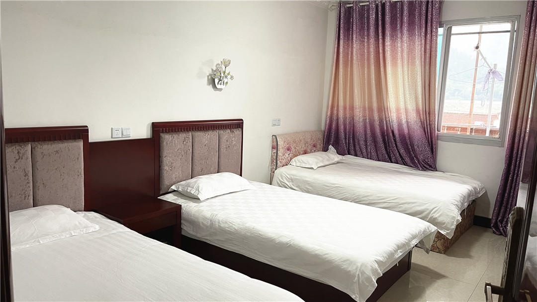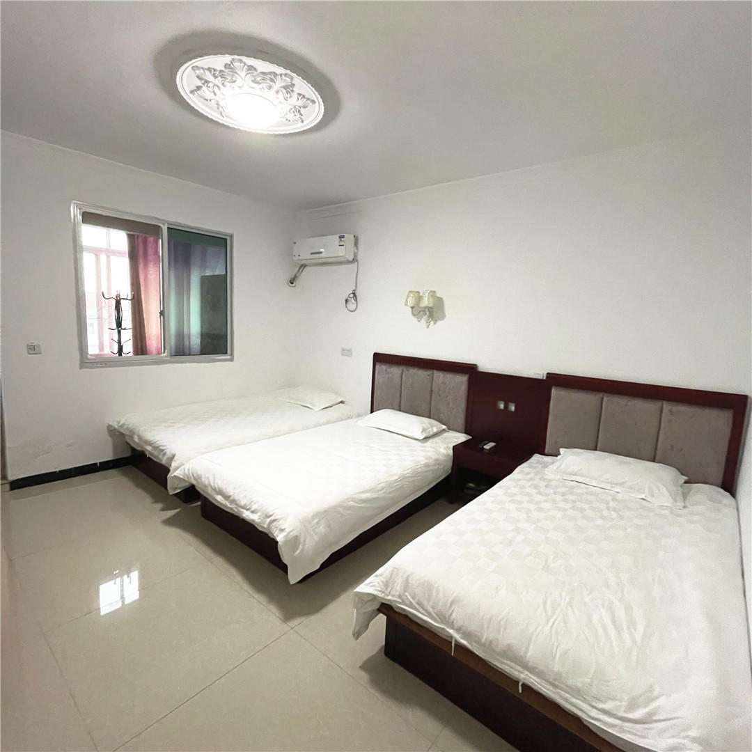 客房:能同时入住61人,房型有标间、三人间、大床房、四人间,房间均配有中央热水器,24小时供应热水,床单被套一客一换。
