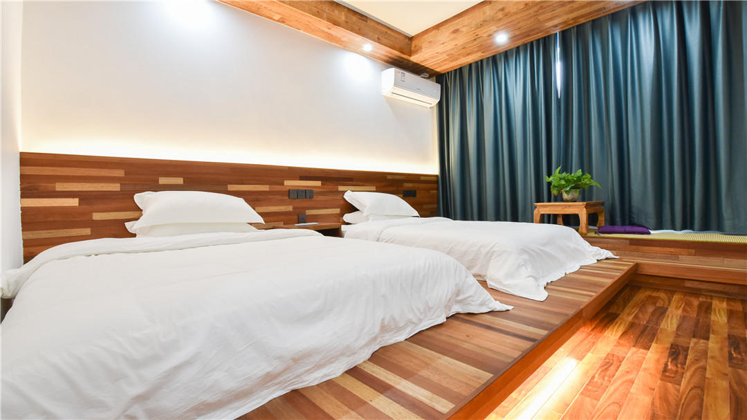 客房:能同时入住11人,房型有标间、大床房、三人间,房间均配有中央热水器,24小时供应热水,床单被套一客一换。