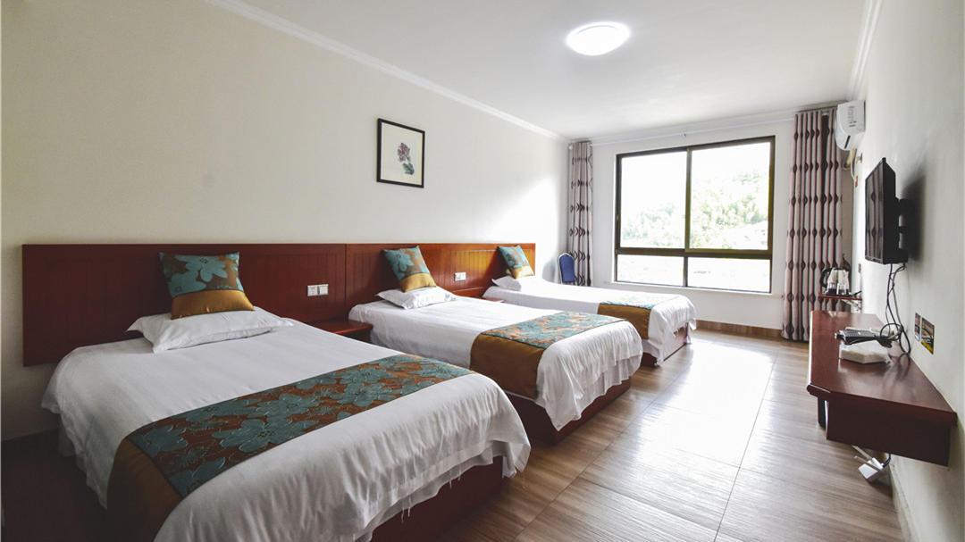 客房:能同时入住34人左右,房型有标准间,大床房,三人间,家庭房,房间均配有中央热水器,24小时供应热水,床单被套一客一换。