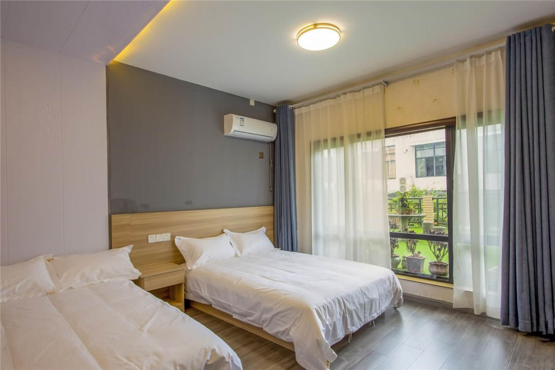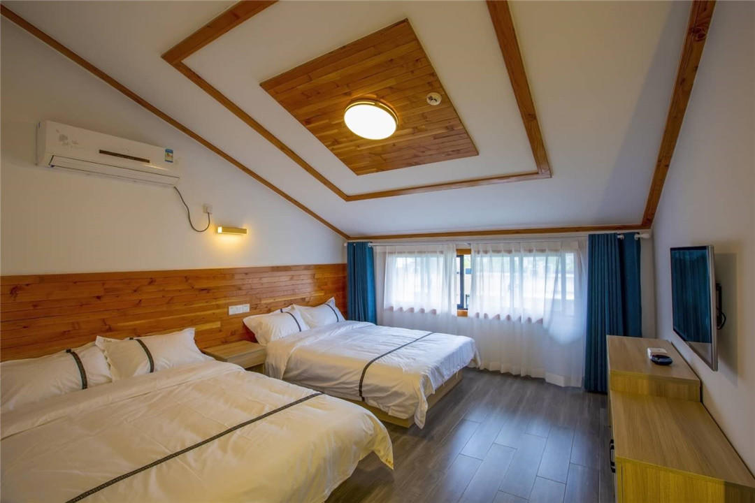 客房:能同时入住25人左右,房型有标准间,大床房,三人间,套房,房间均配有中央热水器,24小时供应热水,床单被套一客一换。