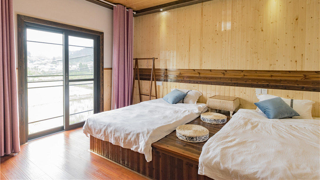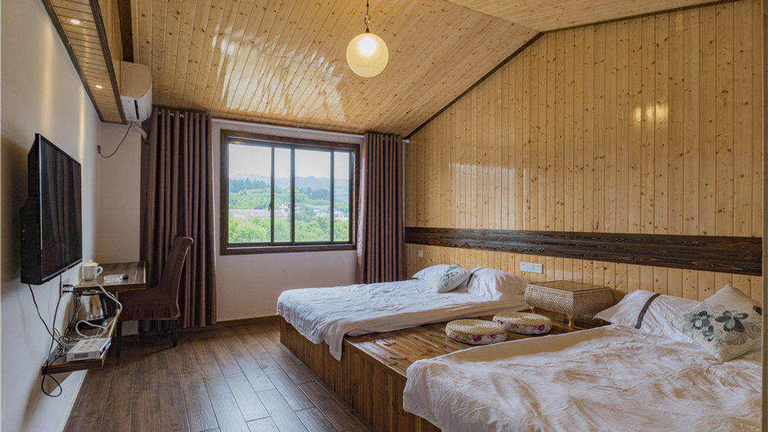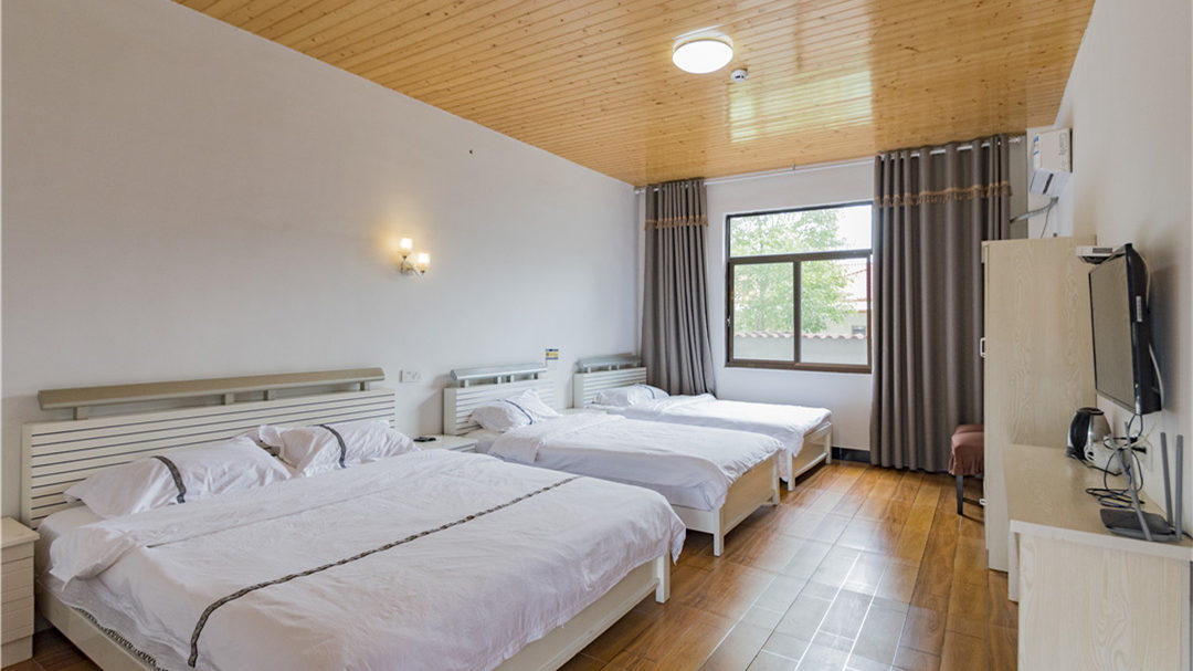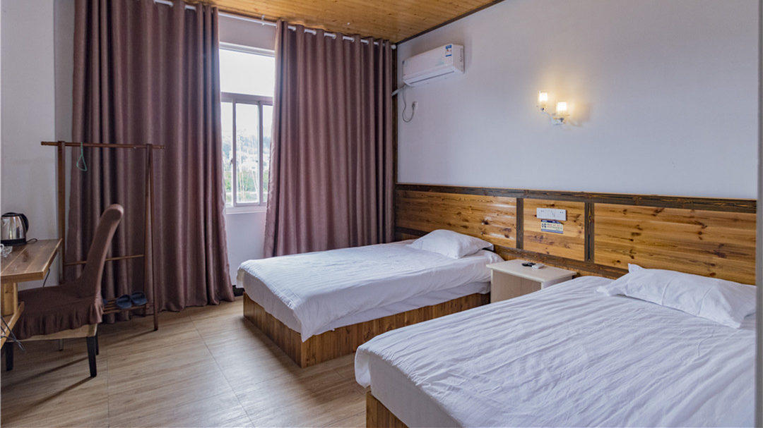 客房:能同时入住80人左右,房型有标间、大床房、三人间、家庭房、榻榻米。房间均配有中央热水器,24小时供应热水,床单被套一客一换。