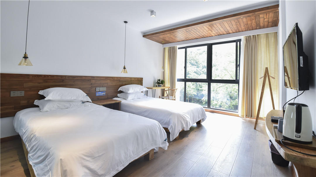 安吉三也民宿位于深溪坞村大石浪景区脚下,独栋的四层小屋沿河而建,背靠青山,环境优美,十四个房间分别能够领略不同角度的风景,给您带来全身心的放松和享受。