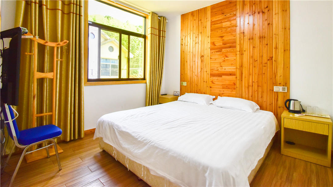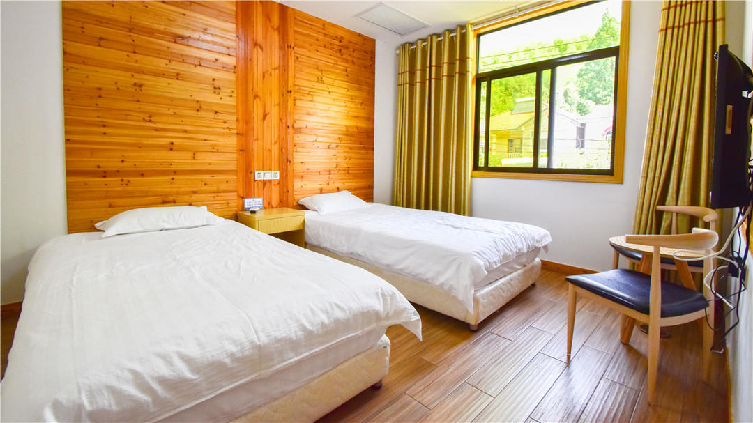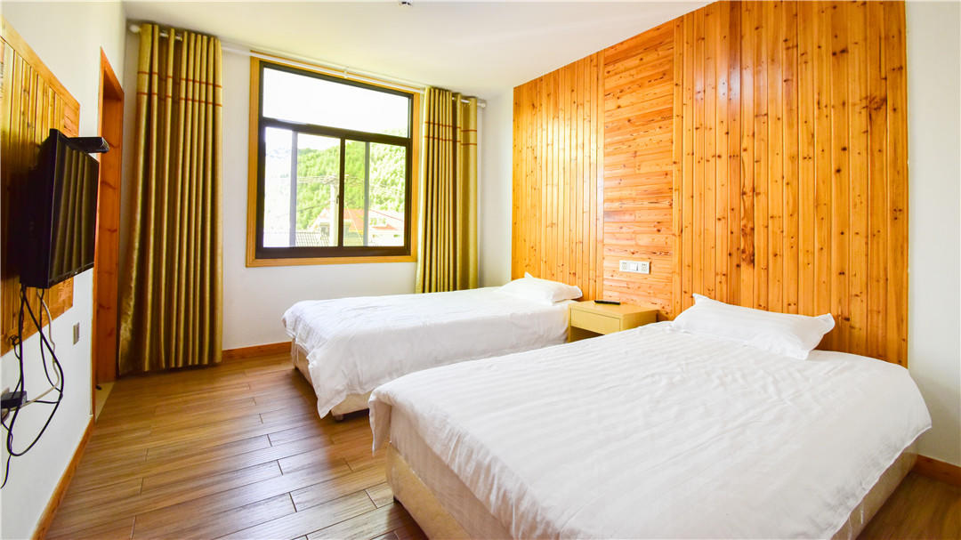 客房:能同时入住30人左右,房型有标间、大床房、亲子房、家庭套房等。房间均配有中央热水器,24小时供应热水,床单被套一客一换。