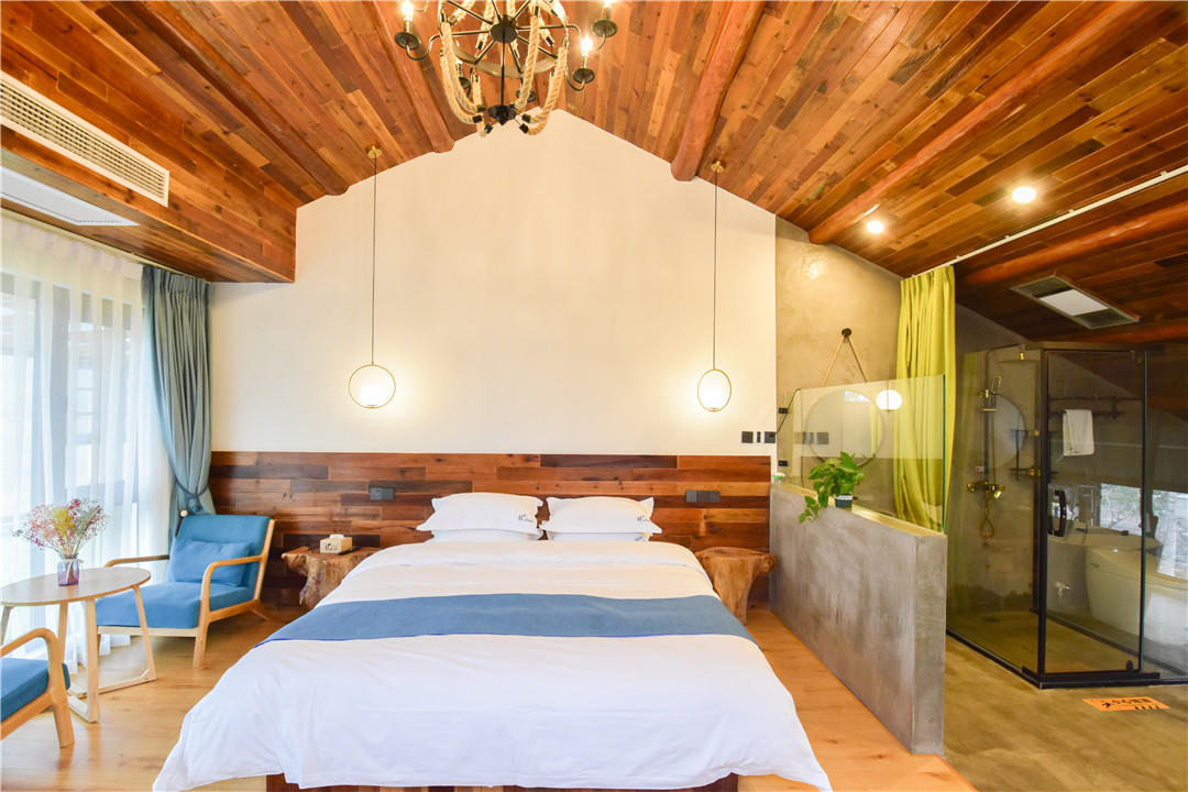 客房:能同时入住21人,房型有家庭房、标间、套间、大床房,房间均配有中央热水器,24小时供应热水,床单被套一客一换。