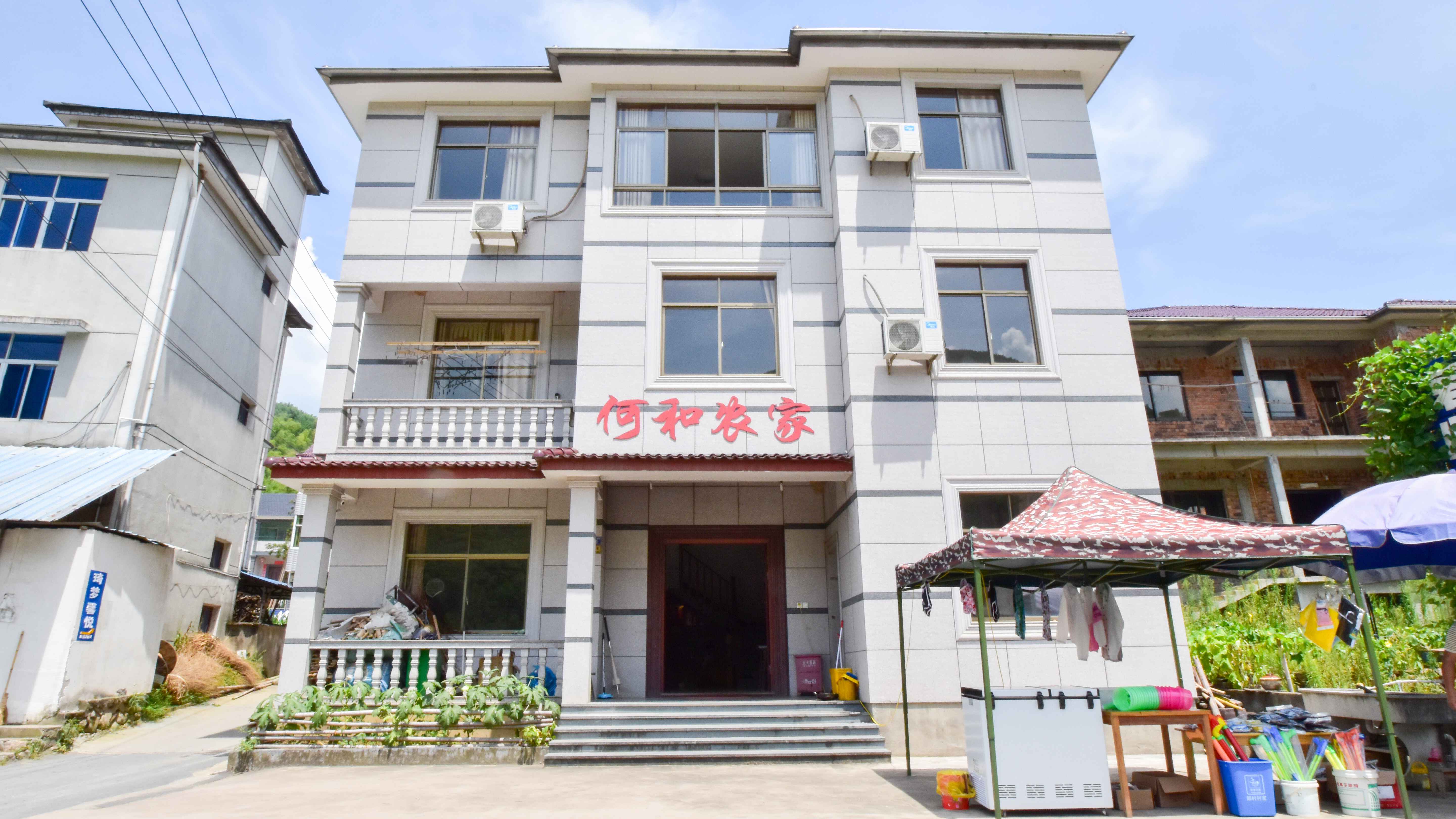 安吉何和农家位于安吉章村, 室内装修大气典雅,在这里饭后漫步在恬静悠然的田园中,大自然的清新很快就去除了你的烦恼疲惫,让你感到心情舒畅一身轻松。