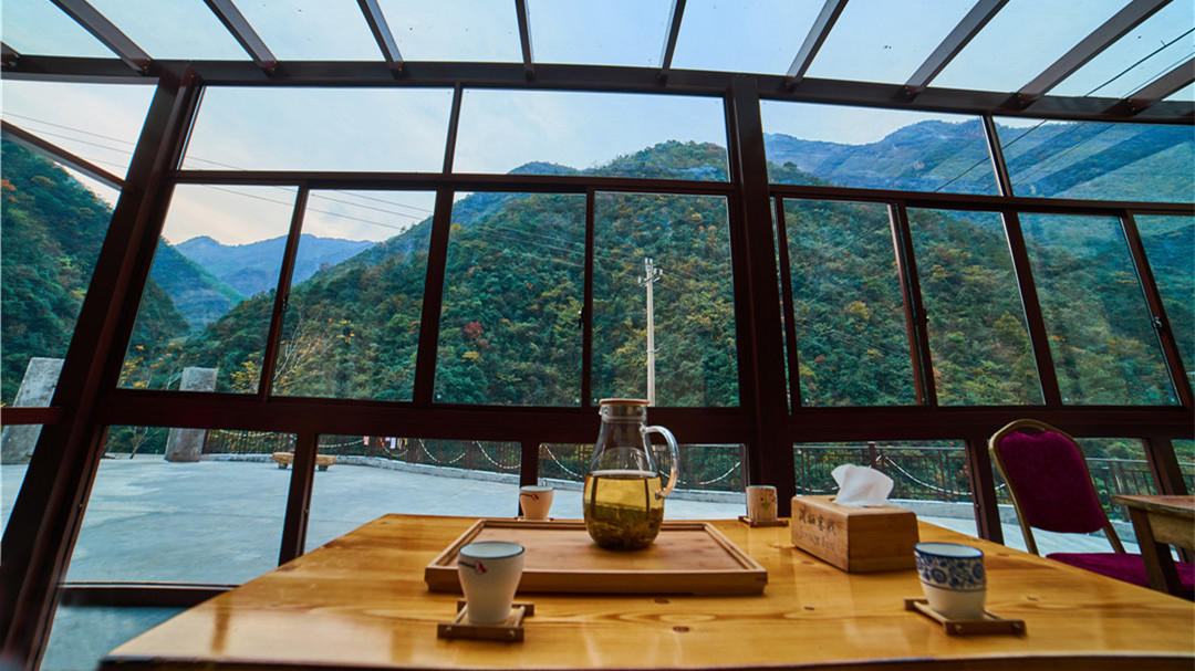 安吉涧栖客栈坐落在天目山北麓的一个小村落一一石岭村之中。在这里,山景悠淡而不远,茶山清幽,竹林疏简,山溪潺涓。涧栖,静静的藏于深山之中,山脉蜿蜒,一座柴山和竹林温柔地拥抱着一幢民居,清风缱绻,竹影摇窗,光影之中,远山或碧现或朦胧,让你情不自禁的放松下来。