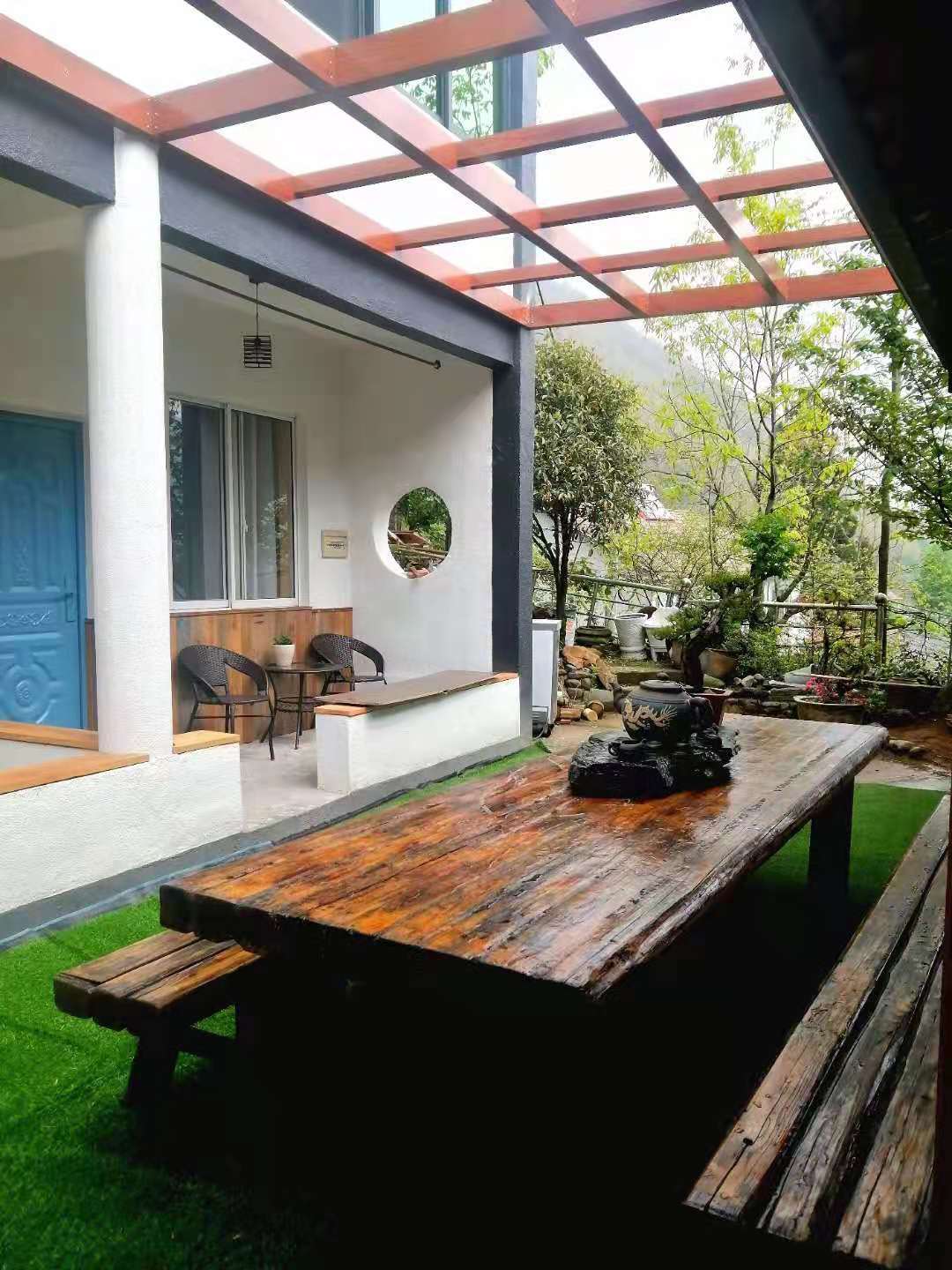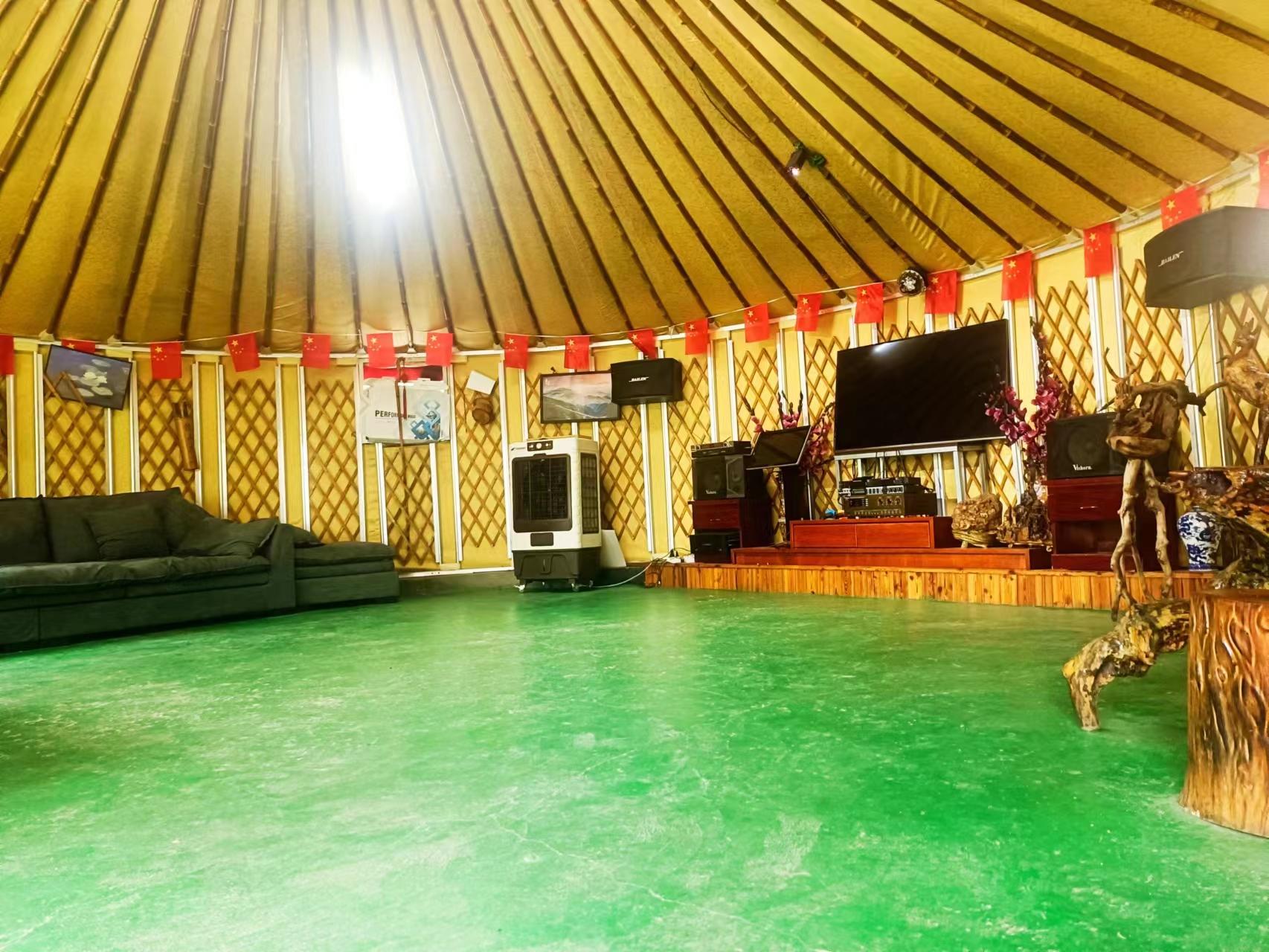 安吉云端谷民宿位于上墅乡龙王村梅坞自然村,这里是我精心准备的家。有缘来住下的朋友,希望它能为你带来一段温馨难忘的旅途体验。,农家乐有两个大蒙古包,一个用来唱歌,一个是打麻将的。