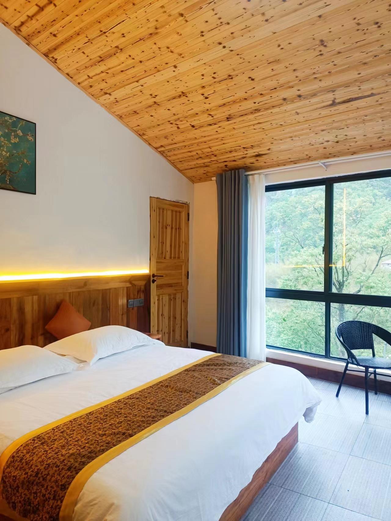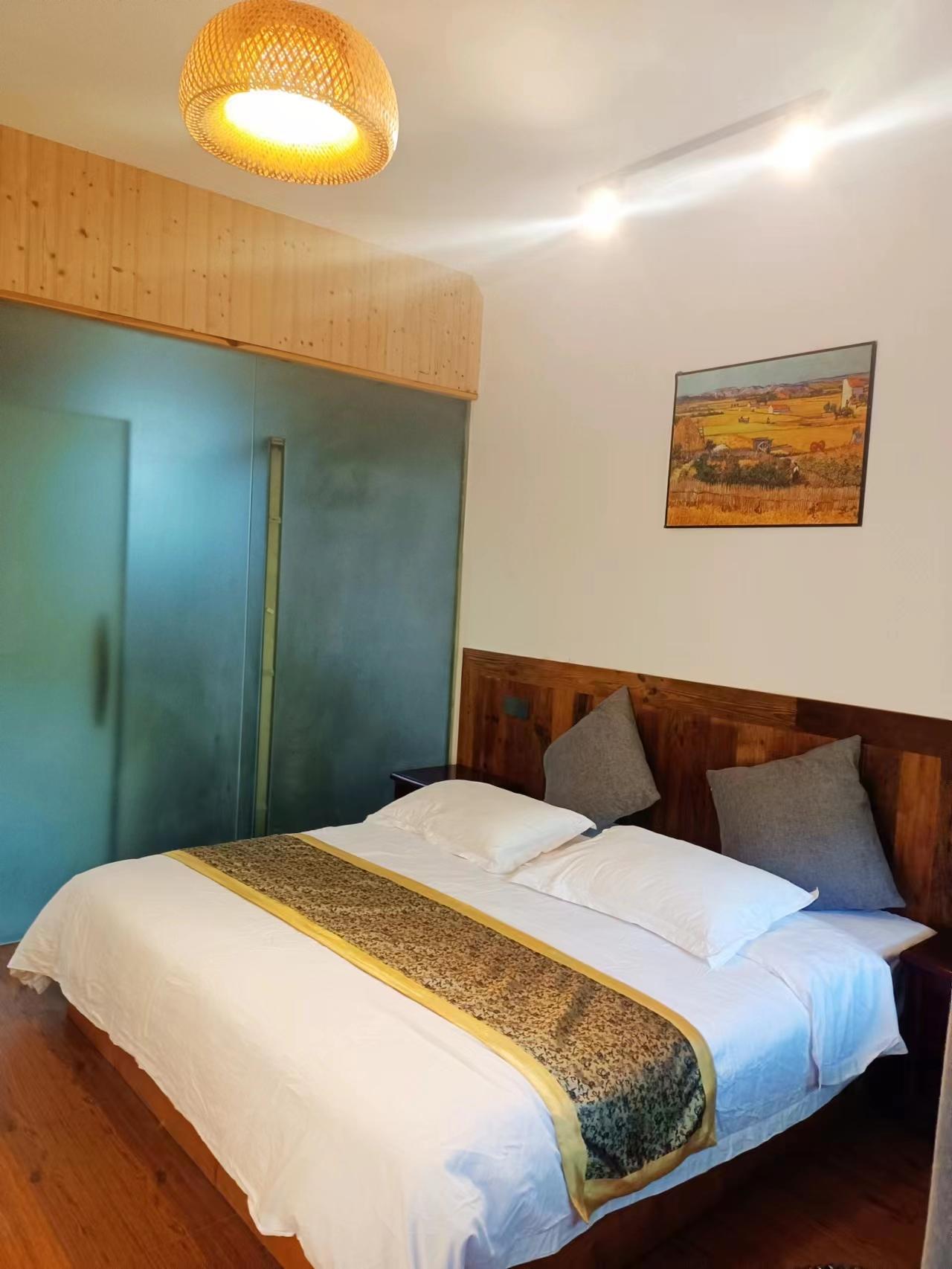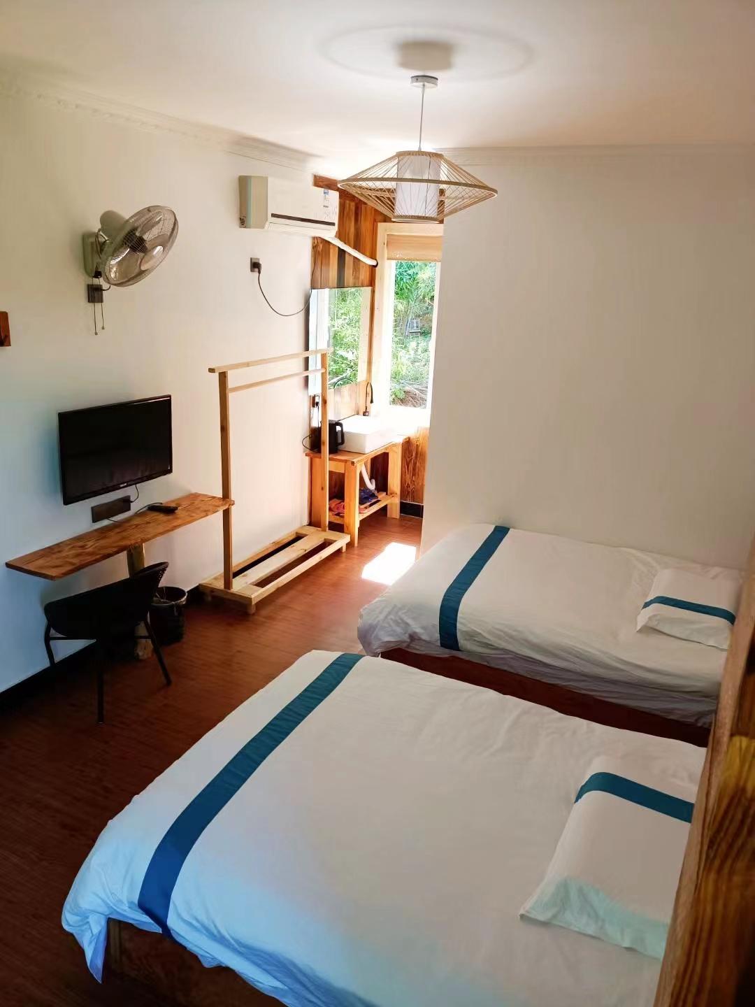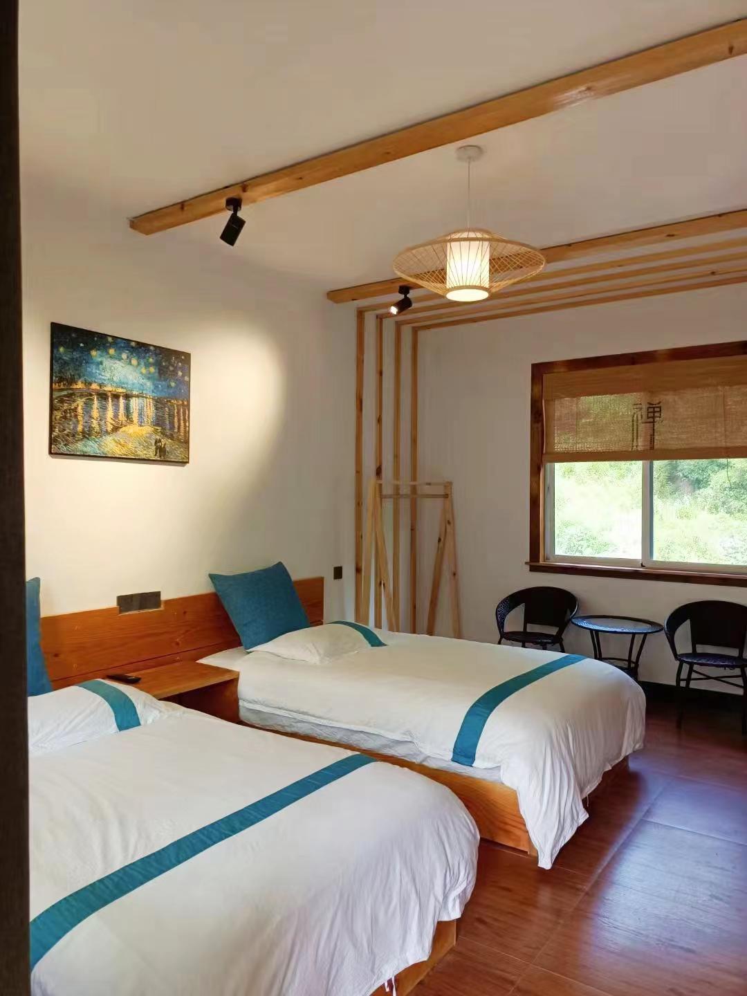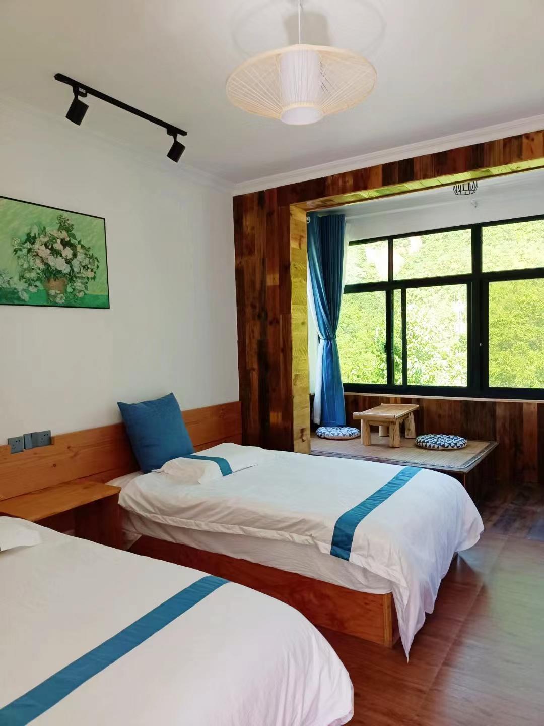 客房:能同时入住32人,房型有标间、三人间、大床房、榻榻米,房间均配有中央热水器,24小时供应热水,床单被套一客一换。