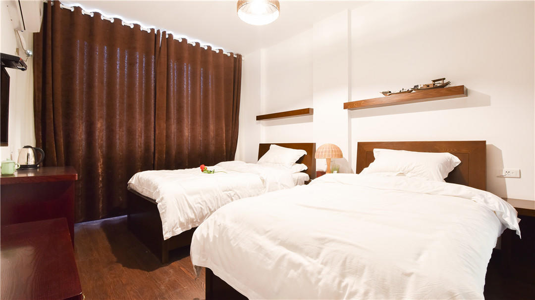 客房:能同时入住32人,房型有标间、亲子间、大床房,房间均配有中央热水器,24小时供应热水,床单被套一客一换。