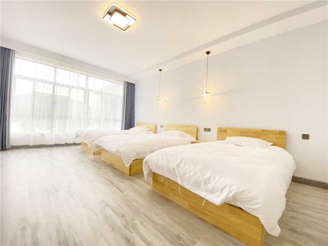 客房:能同时入住41人,房型有标间、三人间、大床房、亲子间,房间均配有中央热水器,24小时供应热水,床单被套一客一换。
