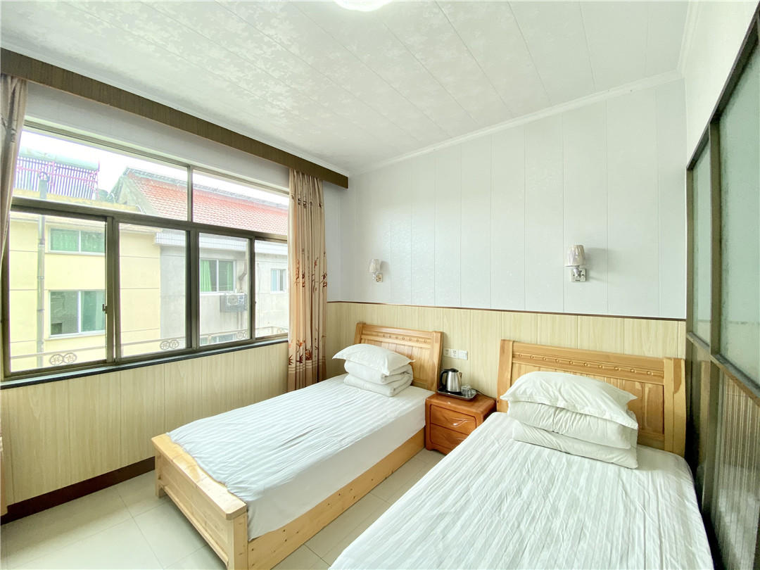 客房:能同时入住30人,房型有标间、三人间、大床房,房间均配有中央热水器,24小时供应热水,床单被套一客一换。