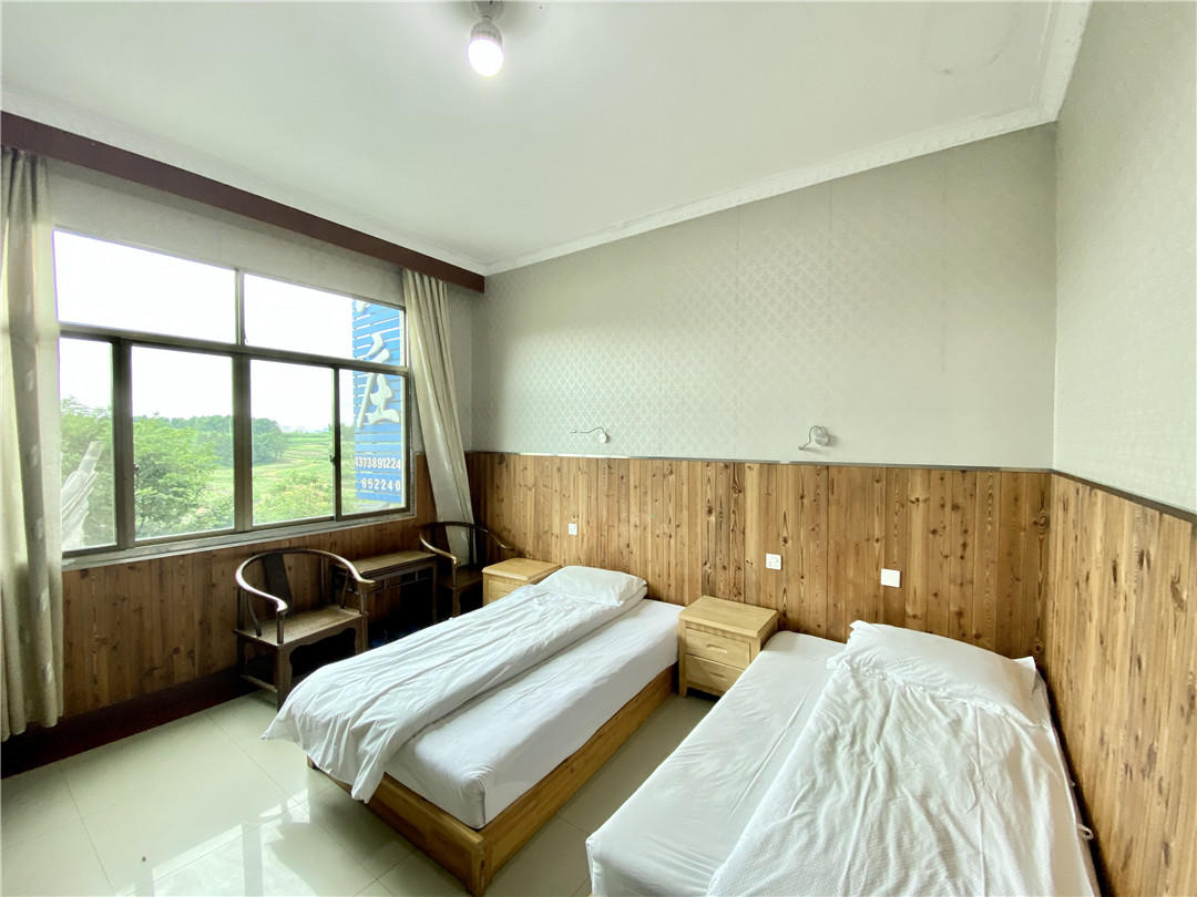 客房:能同时入住27人,房型有标间、三人间、大床房,房间均配有中央热水器,24小时供应热水,床单被套一客一换。