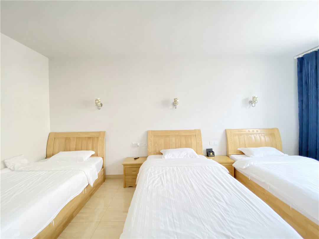 客房:能同时入住36人,房型有标间、三人间、大床房、亲子间,房间均配有中央热水器,24小时供应热水,床单被套一客一换。