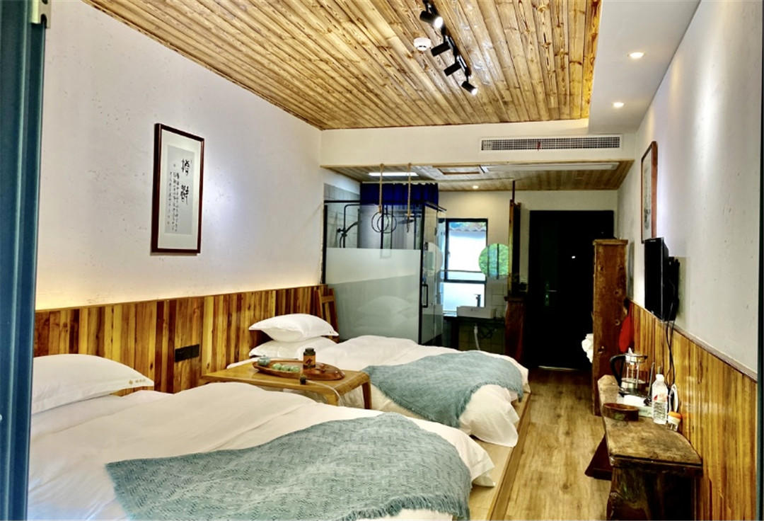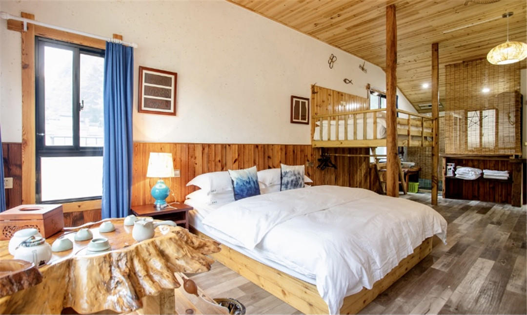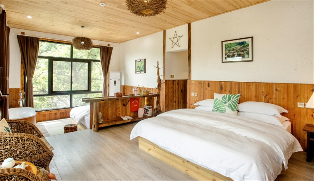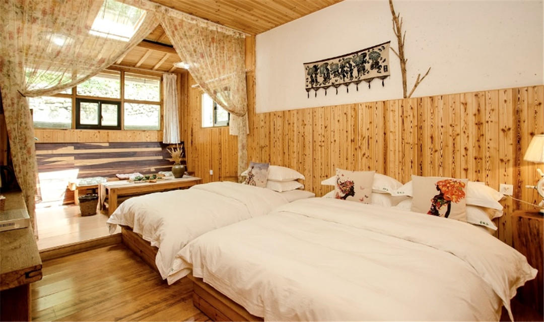 客房:能同时入住20人,房型有标间、亲子间、套间,房间均配有中央热水器,24小时供应热水,床单被套一客一换。