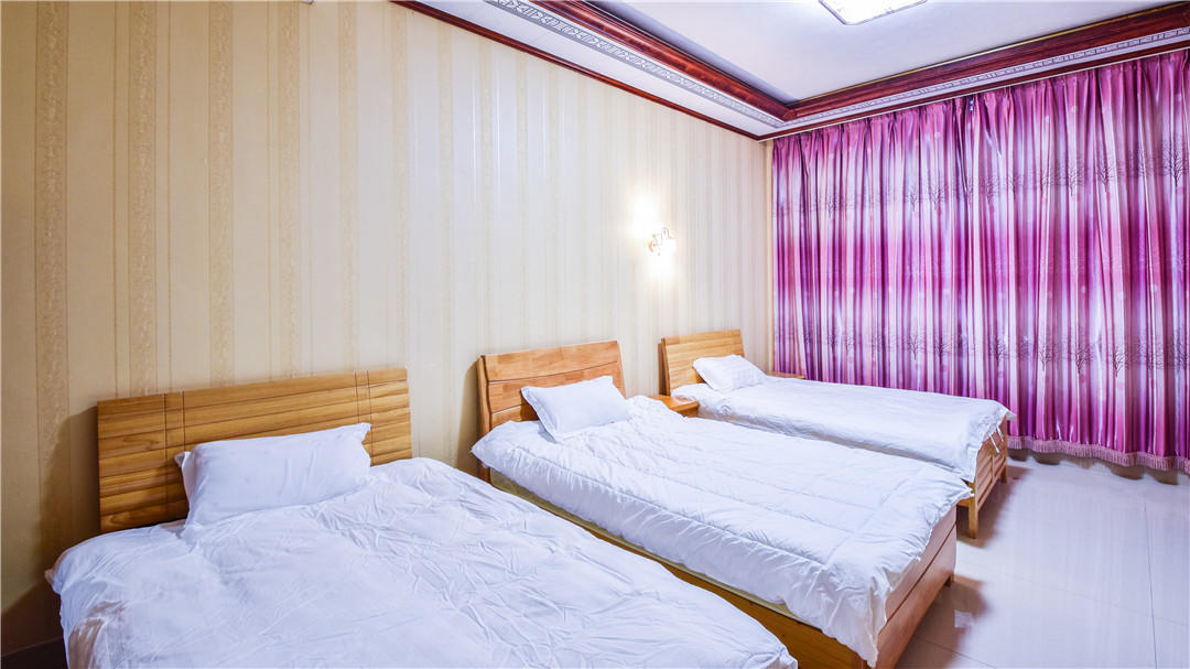 客房:能同时入住13人,房型有标间、三人间、大床房,房间均配有中央热水器,24小时供应热水,床单被套一客一换。