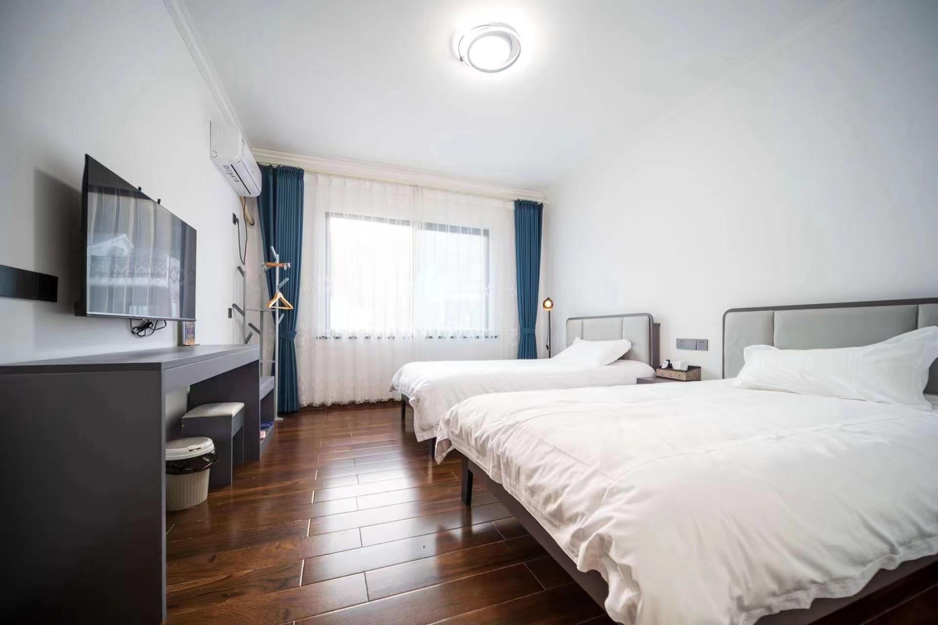 客房:能同时入住10人,房型有标间、大床房,房间均配有中央热水器,24小时供应热水,床单被套一客一换。