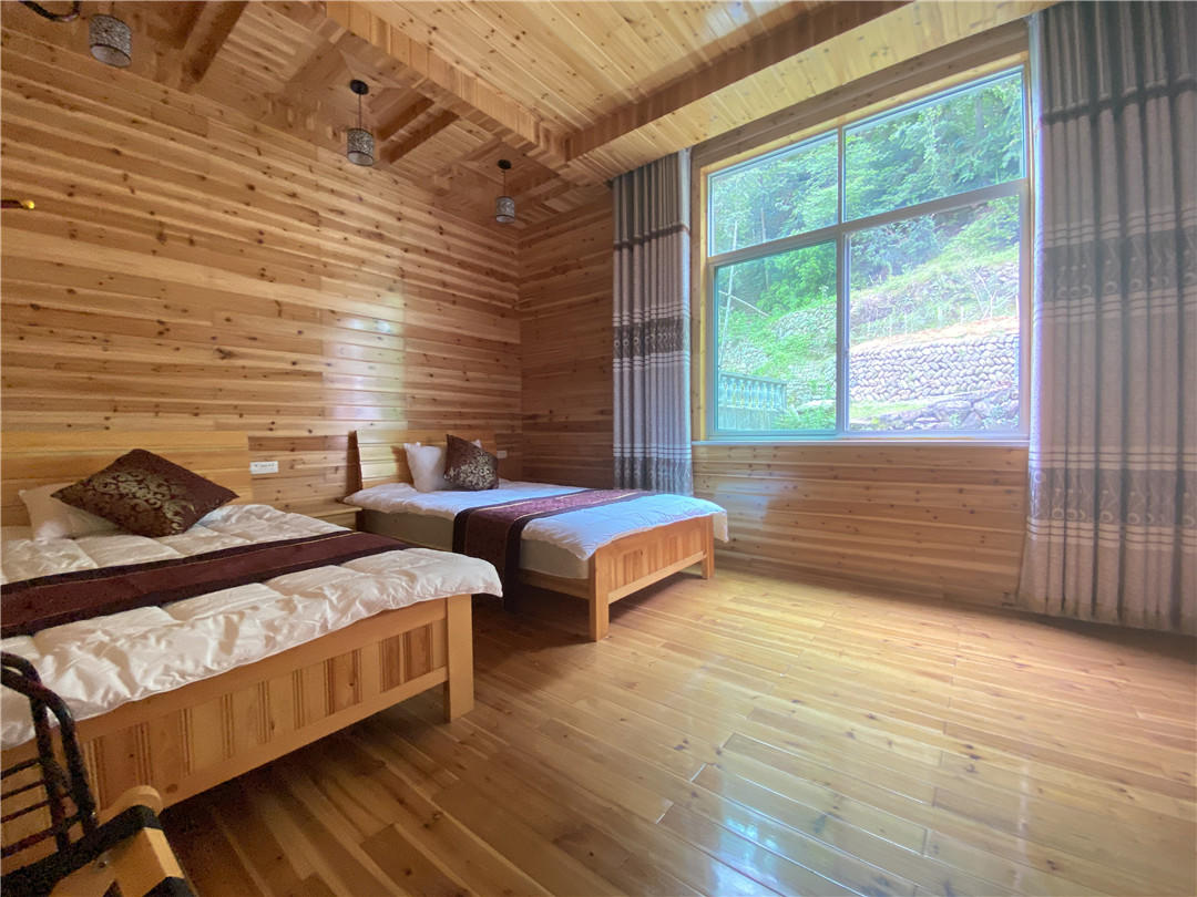 客房:能同时入住14人,房型有标间、大床房,房间均配有中央热水器,24小时供应热水,床单被套一客一换。