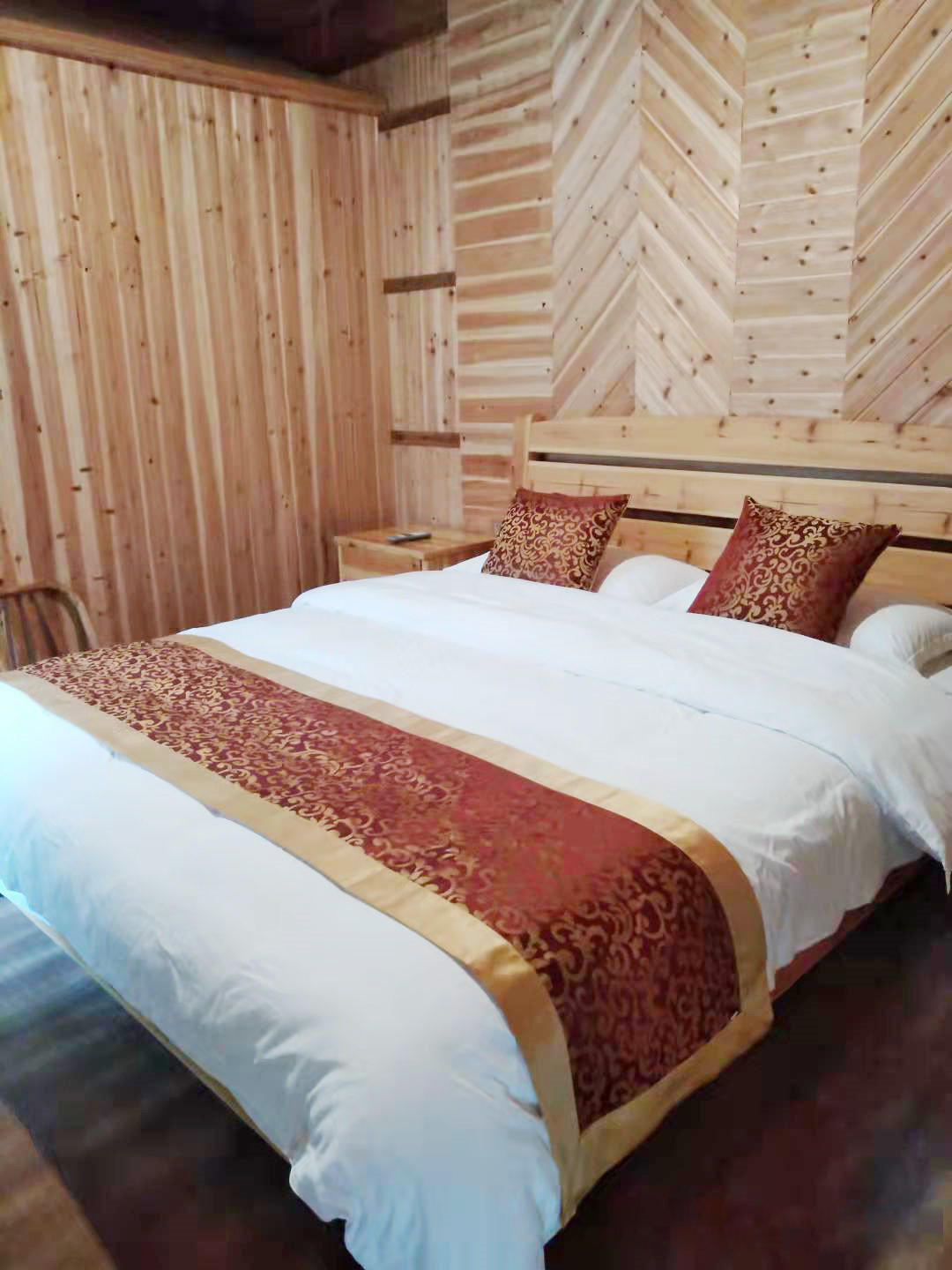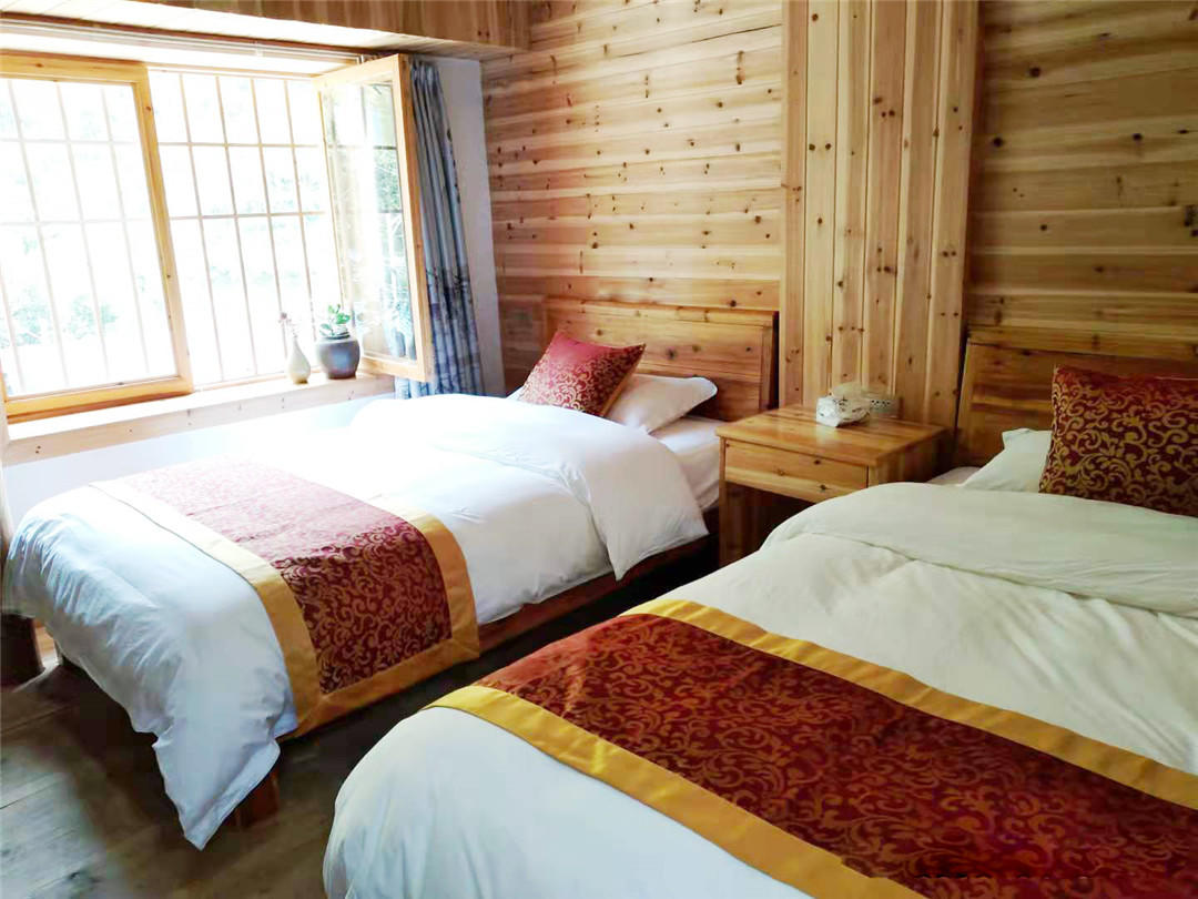 客房:能同时入住12人,房型有标间、大床房,房间均配有中央热水器,24小时供应热水,床单被套一客一换。