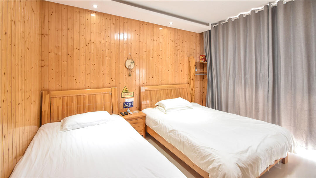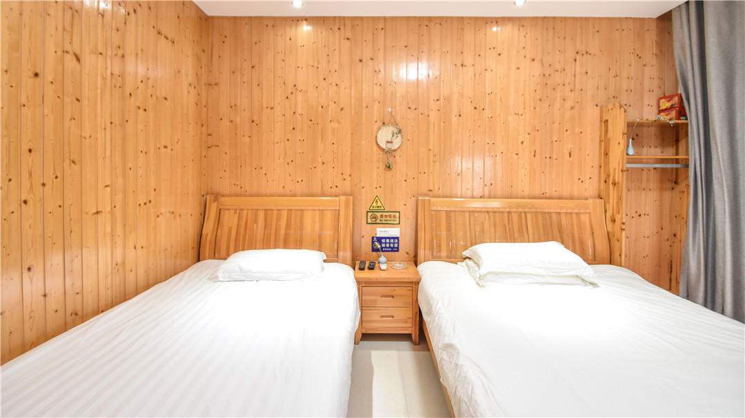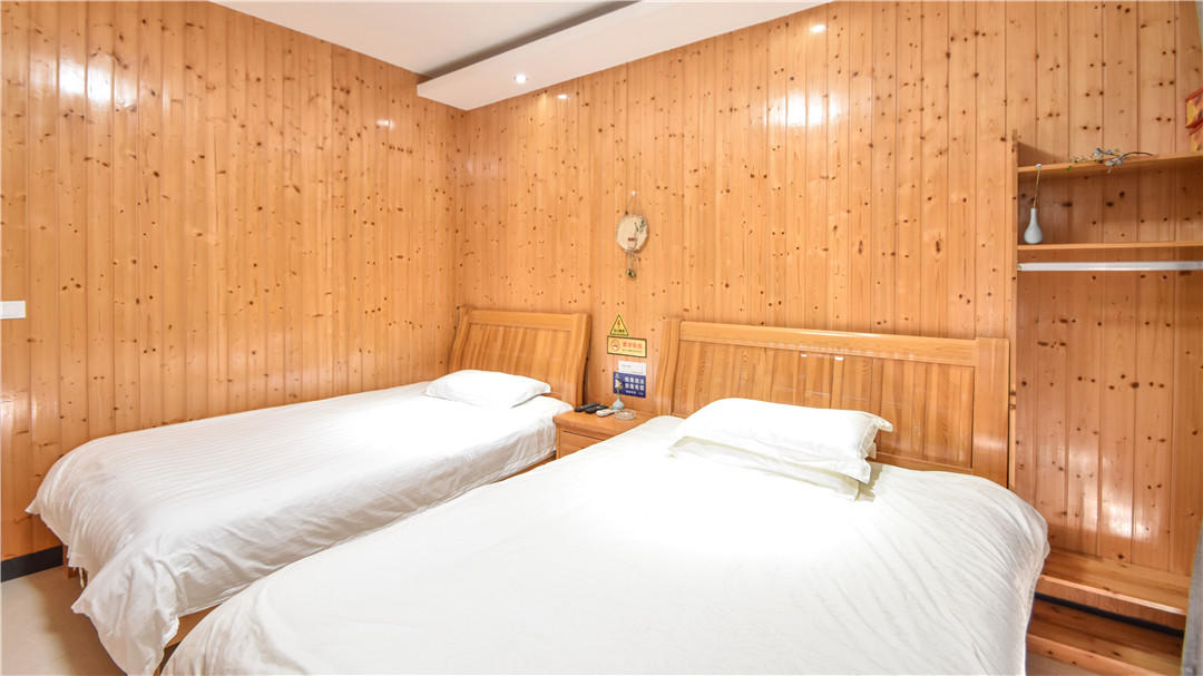客房:能同时入住42人,房型有标间、家庭房、大床房、精装大床房,房间均配有中央热水器,24小时供应热水,床单被套一客一换。