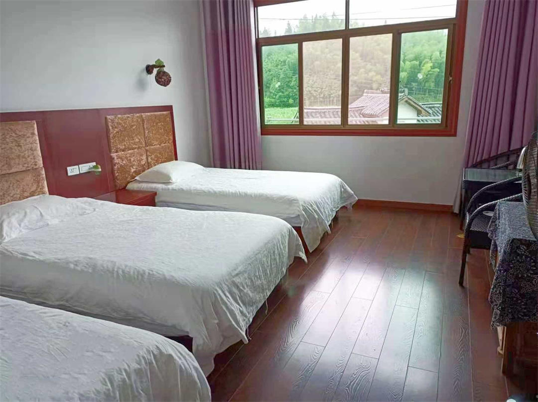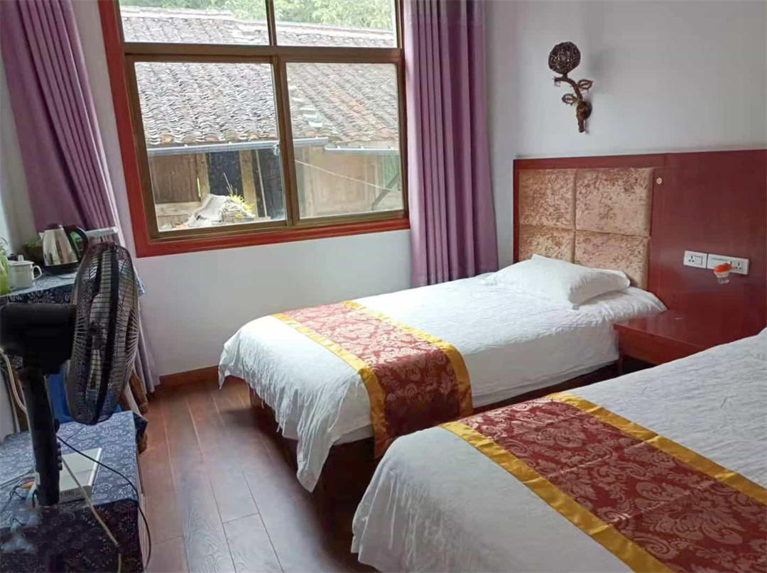 客房:能同时入住12人,房型有标间2间,大床房1间,三人间2间,房间均配有中央热水器,24小时供应热水,床单被套一客一换。