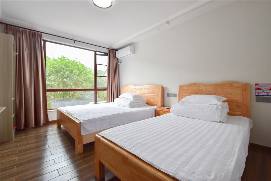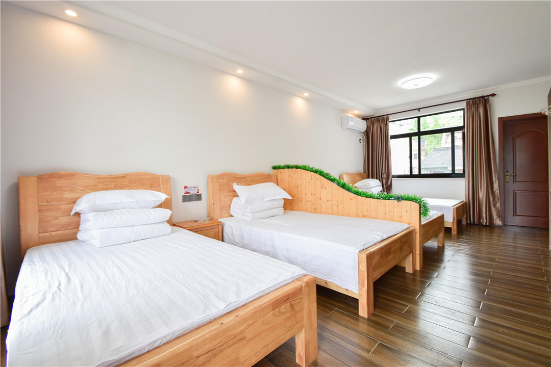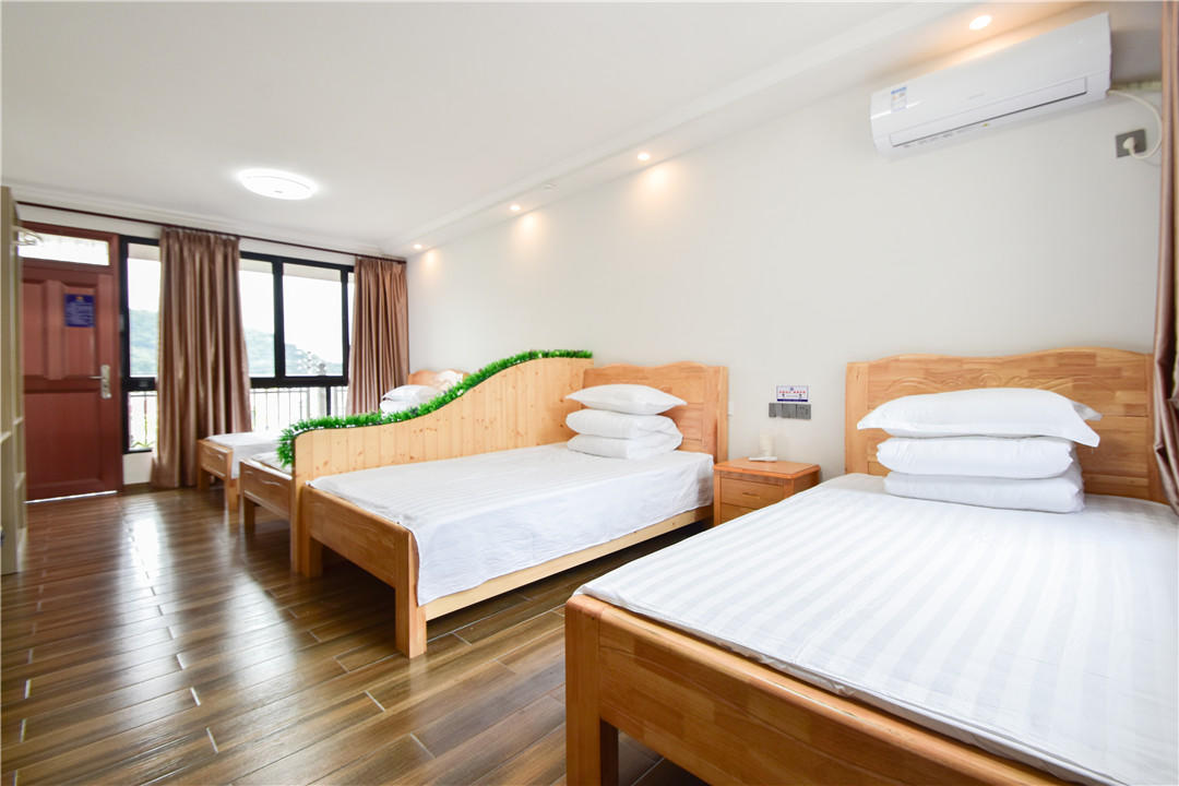 客房:能同时入住43人,房型有标间、三人间、家庭房、四人间,房间均配有中央热水器,24小时供应热水,床单被套一客一换。