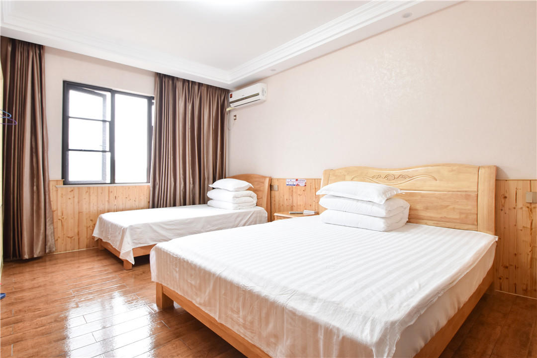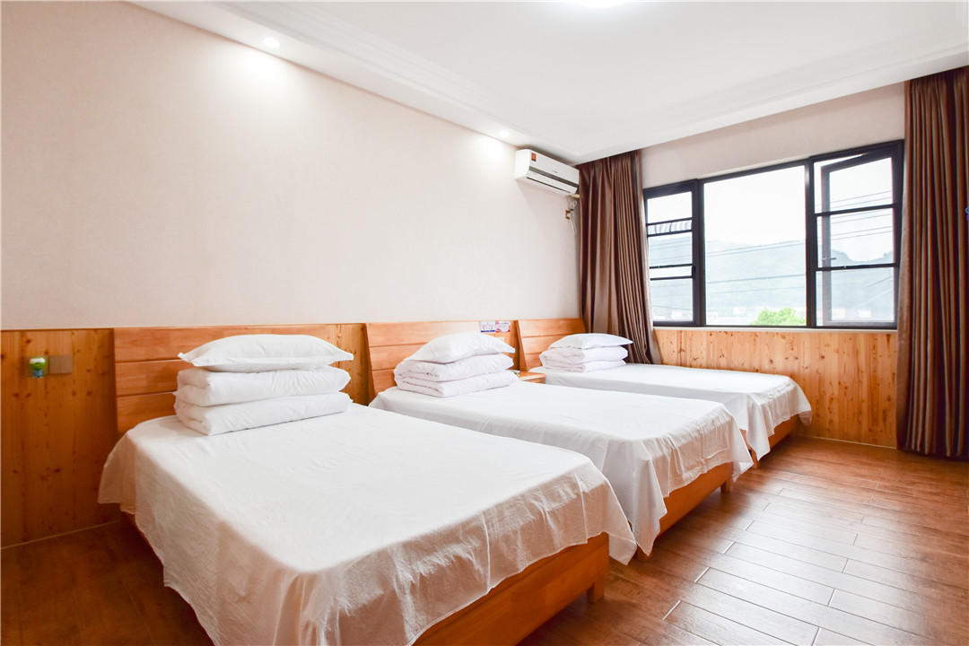 客房:能同时入住34人,房型有标间、三人间、家庭房,房间均配有中央热水器,24小时供应热水,床单被套一客一换。