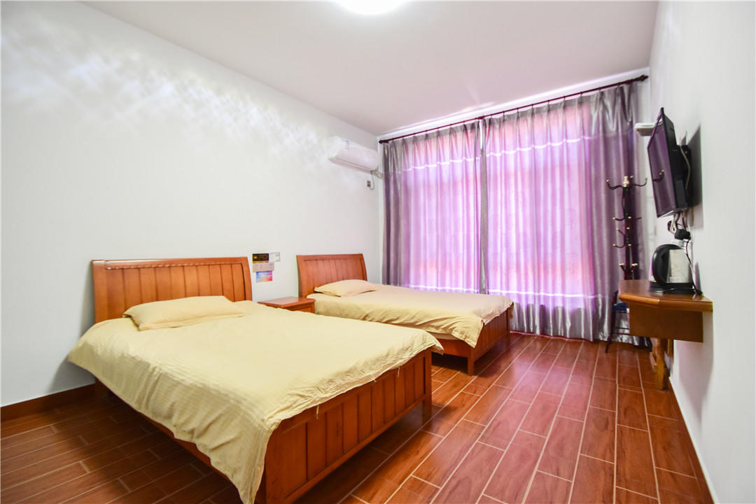客房:能同时入住34人,房型有标间、三人间,房间均配有中央热水器,24小时供应热水,床单被套一客一换。