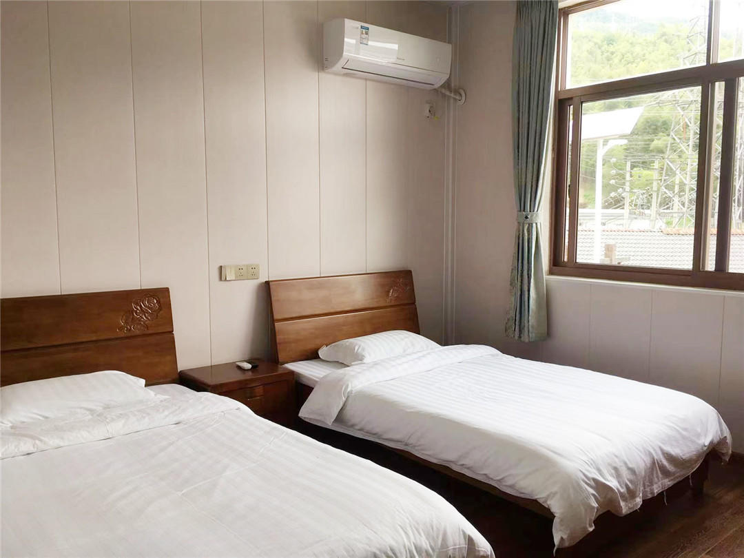 客房:能同时入住18人,房型有标间、大床房,房间均配有中央热水器,24小时供应热水,床单被套一客一换。