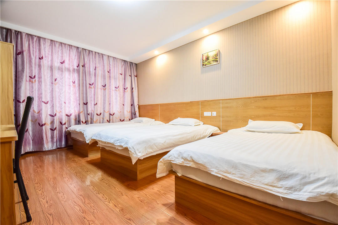 客房:能同时入住33人,房型有家庭房、三人间、大床房,房间均配有中央热水器,24小时供应热水,床单被套一客一换。