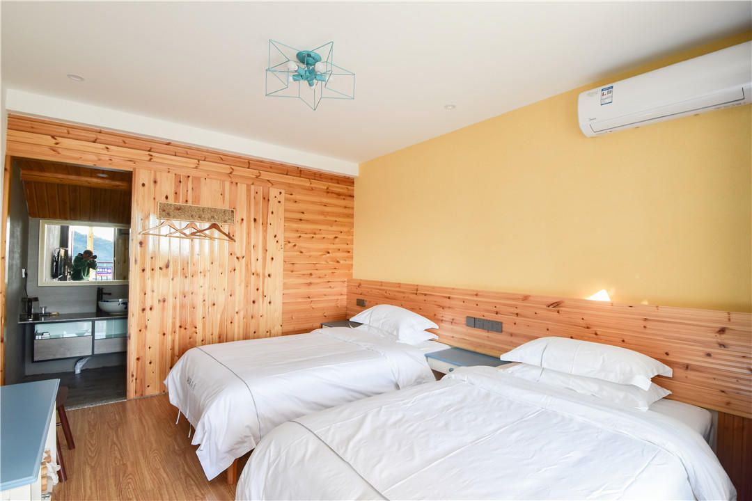 客房:能同时入住42人,房型有标间、三人间、家庭房,房间均配有中央热水器,24小时供应热水,床单被套一客一换。