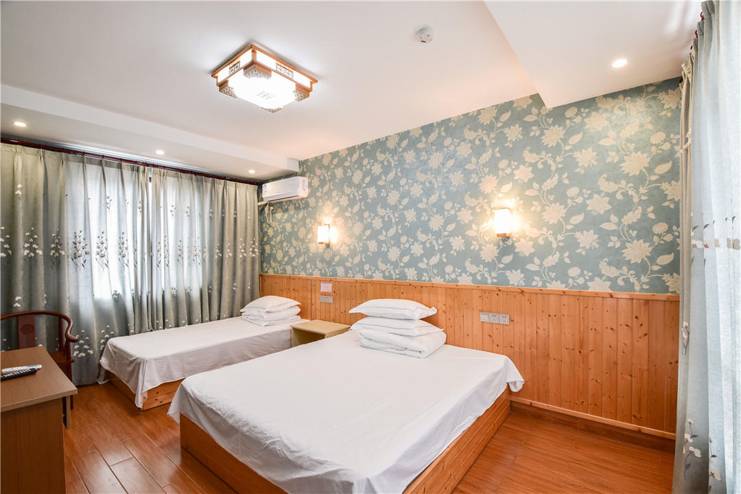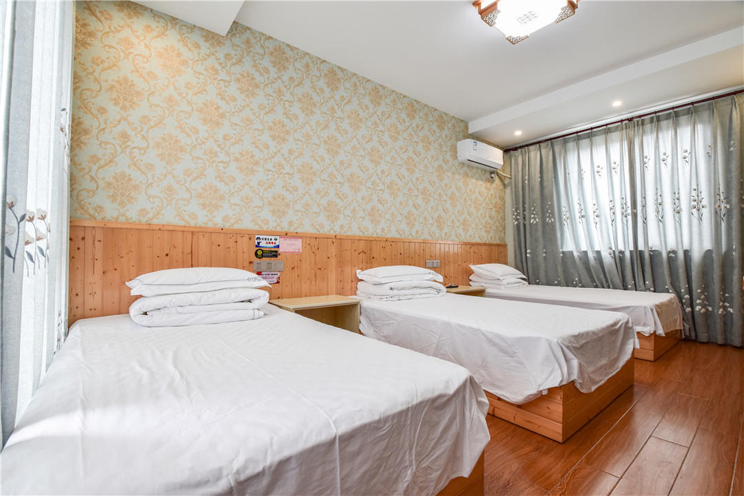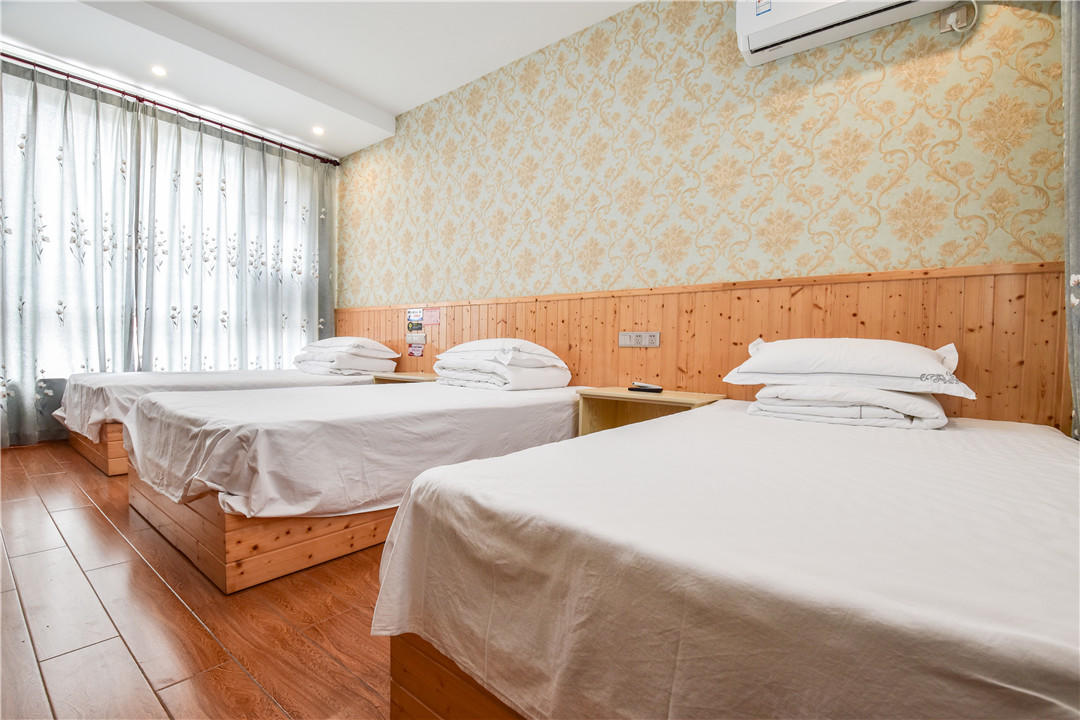 客房:能同时入住27人,房型有标间、三人间、大床房、套间,房间均配有中央热水器,24小时供应热水,床单被套一客一换。