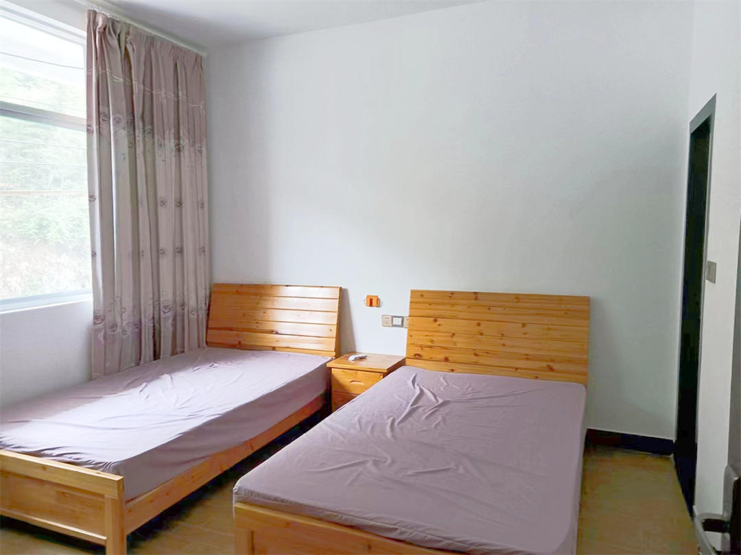 客房:能同时入住29人,房型有大床房1间1.8、标间9间1.2+1.2、3人间3间1.2+1.2+1.2,房间均配有中央热水器,24小时供应热水,床单被套一客一换。