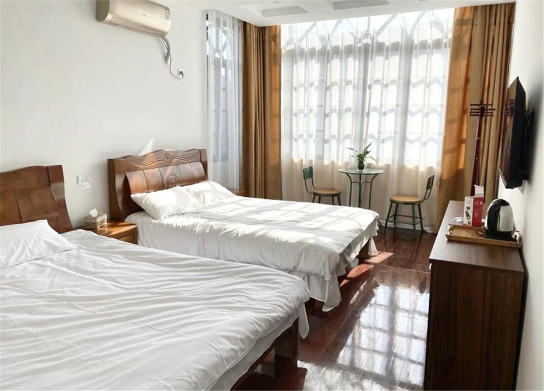 客房:能同时入住19人,房型有标间、单人间、大床房、亲子间,房间均配有中央热水器,24小时供应热水,床单被套一客一换。