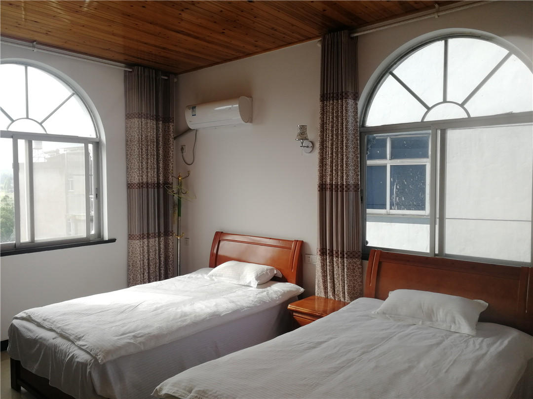 客房:能同时入住26人,房型有标间、大床房,房间均配有中央热水器,24小时供应热水,床单被套一客一换。
