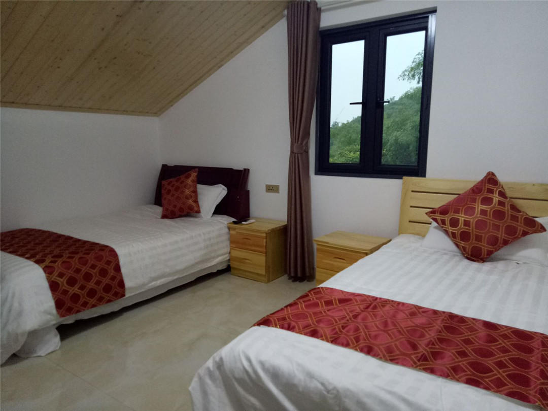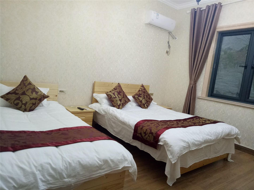 客房:能同时入住18人,房型有标间、亲子间、大床房、四人间,房间均配有中央热水器,24小时供应热水,床单被套一客一换。