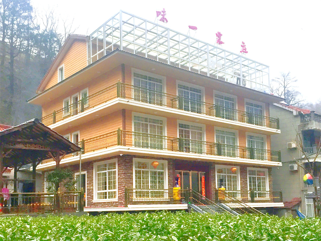 味一农庄位于安吉县天荒坪镇藏龙百瀑景区对面,农庄地理位置优越,这里春夏秋冬皆景色宜人,旁边是瀑布,屋后有茶山,高山避暑,这里常年平均温度18℃,是一绝佳的避暑胜地。沿途两岸千米高山对峙,森林茂密,路边飞瀑流泉,可见悬崖叠嶂,奇峰林立,瞬间迎面而翠竹连绵。是您休闲度假的首选。