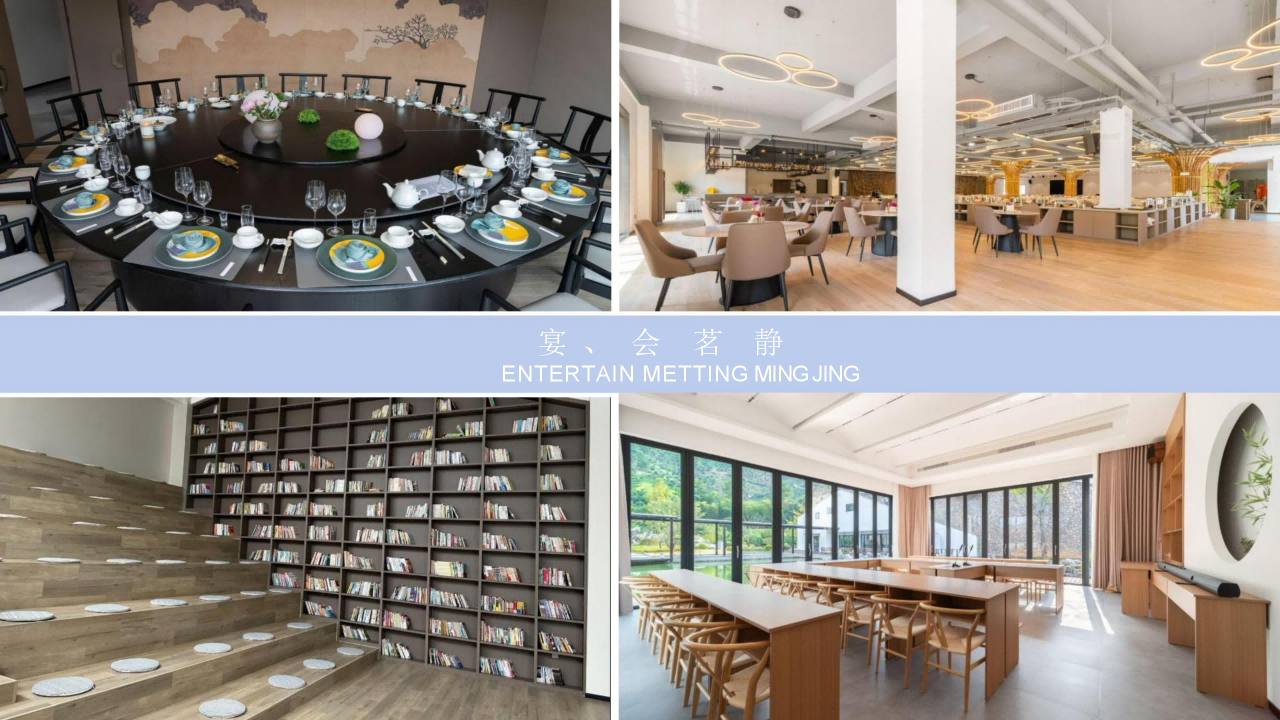 酒店为团队出游配备了多功能厅,可用于商务会议、晚宴、影院等,集商务休闲于一体。我们还特别为您提供由进口洗护用品,让您和家人在山野间也能享受优越舒适的环境。来茗静园,按下生活中的Pause键,暂避俗世的杂声,一起聆听绵延的声音。