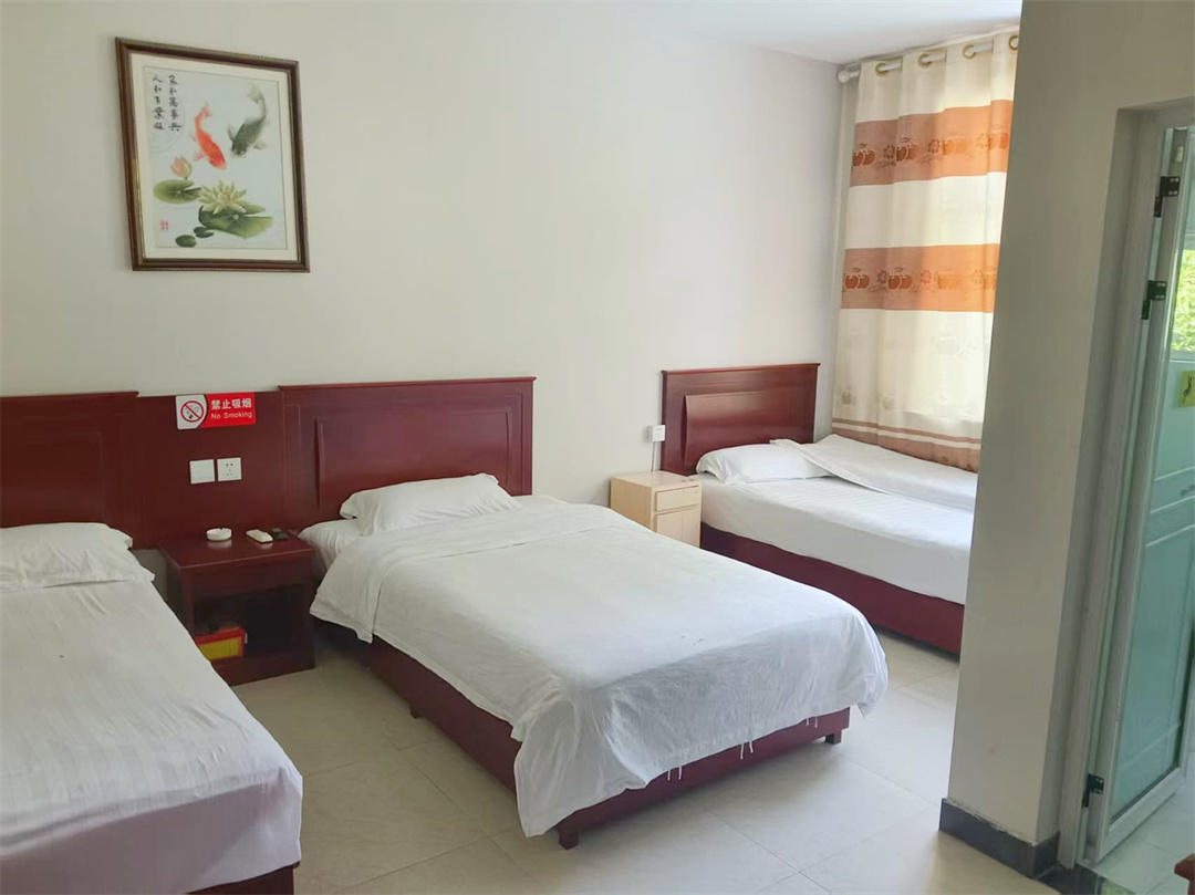 客房:能同时入住29人,房型有标间10间(1.2+1.2),大床房3间(1.5),三人间1间(1.2),房间均配有中央热水器,24小时供应热水,床单被套一客一换。