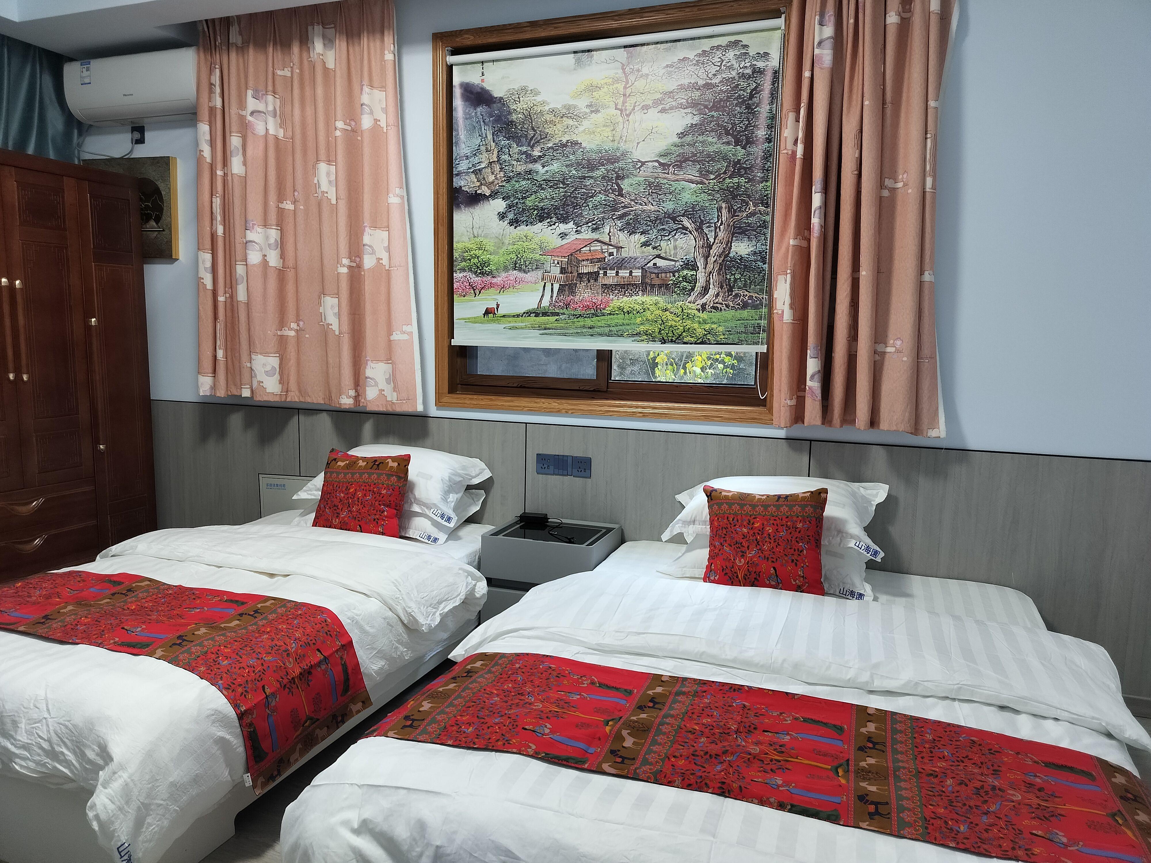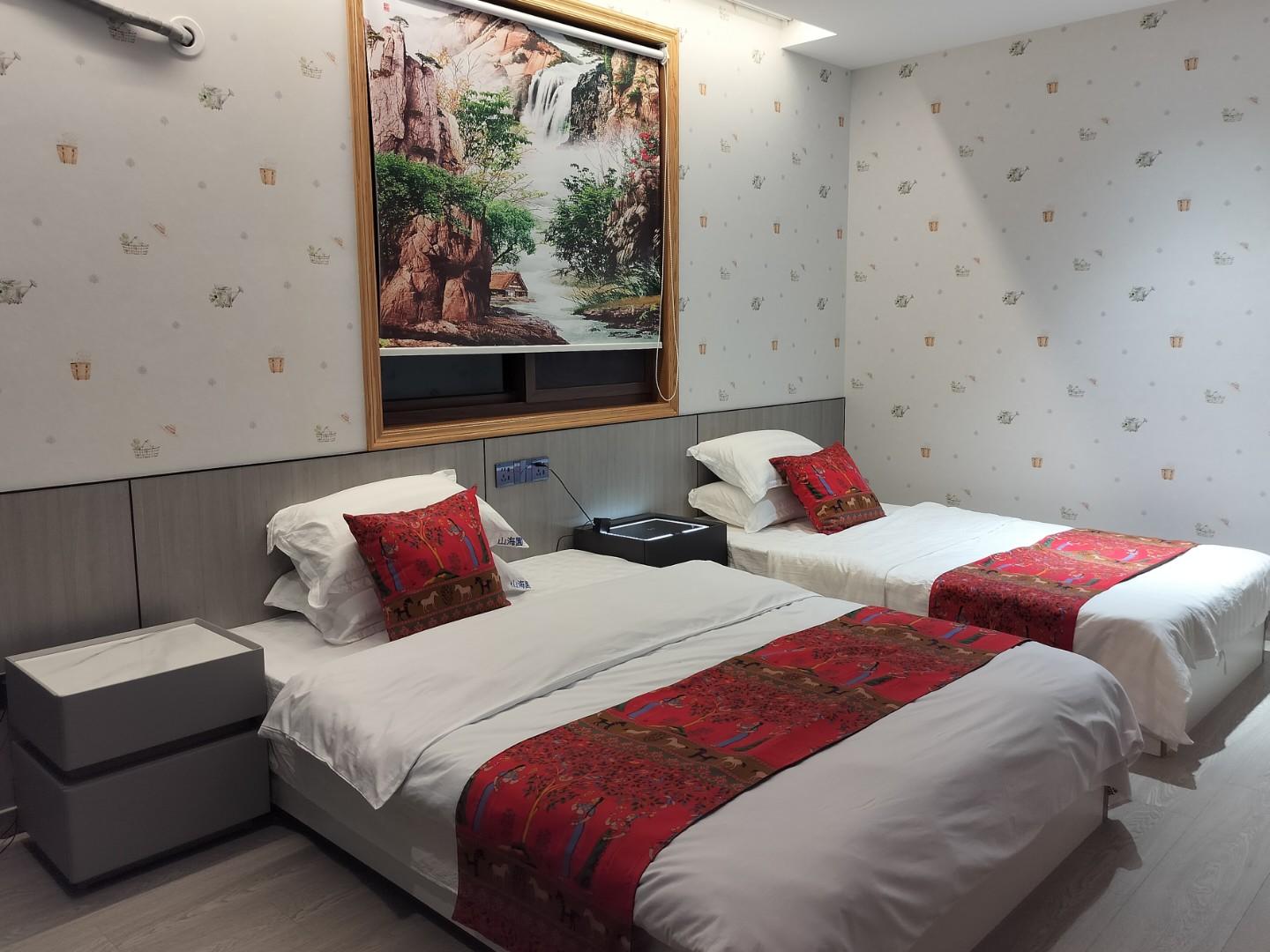 客房:能同时入住13人,房型有标间,大床房,房间均配有热水器,24小时供应热水,床单被套一客一换。