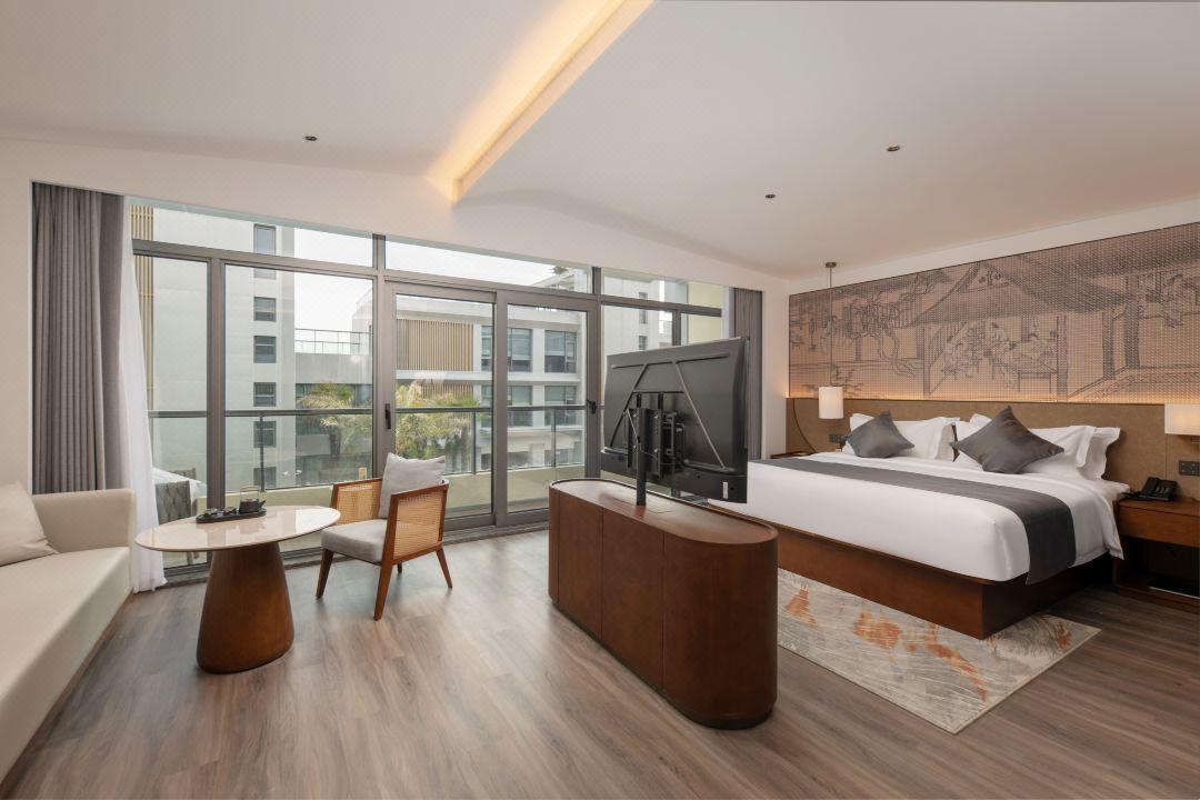 雷迪森度假酒店坐拥钱塘江国际旅游长廊。这里不仅是观赏钱江大潮的好地方,更承载着深厚的江南蚕桑文化历史,让人在享受度假之余,亦能感受历史的厚重与文化的魅力。院内建有6幢三层别墅,共计多间宽敞舒适的客房,为宾客提供温馨宜人的住宿体验。