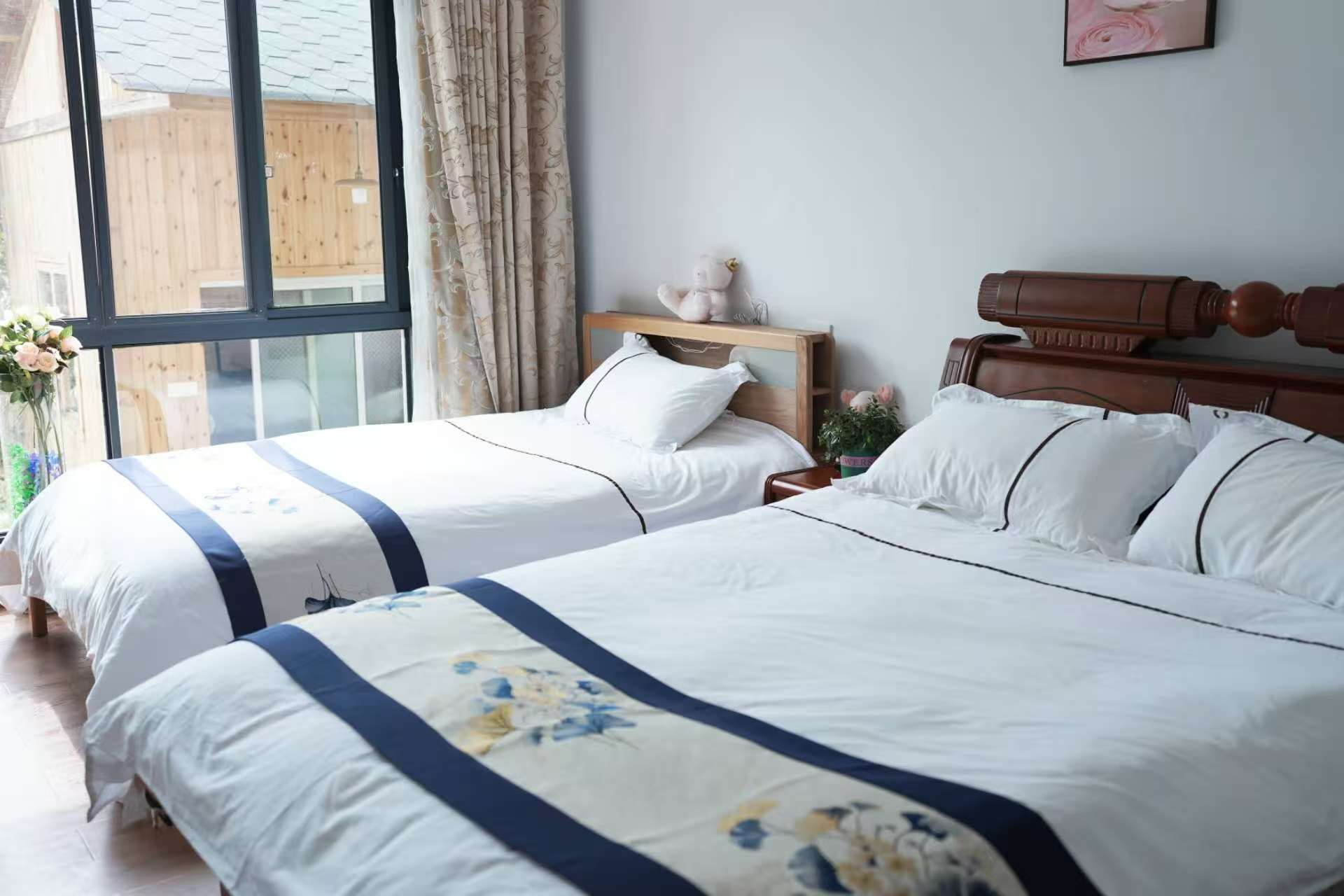 客房:能同时入住18人,房型有标间,大床房,房间均配有热水器,24小时供应热水,床单被套一客一换。