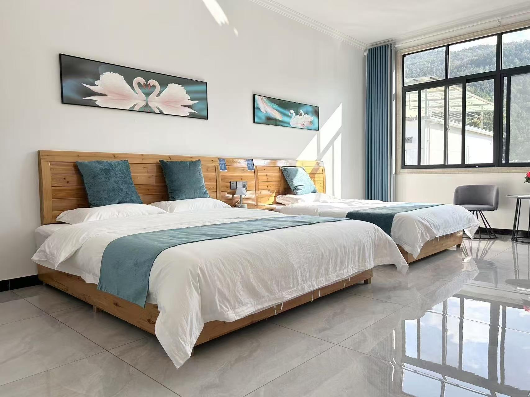 客房:能同时入住12人左右,房型有亲子间3间(1.8+1.2),标间2间(1.2),大床房套房1间(1.8),房间均配有中央热水器,24小时供应热水,床单被套一客一换。