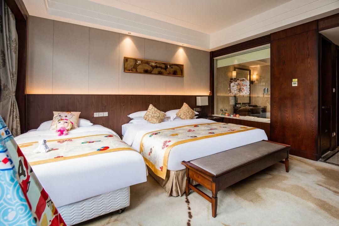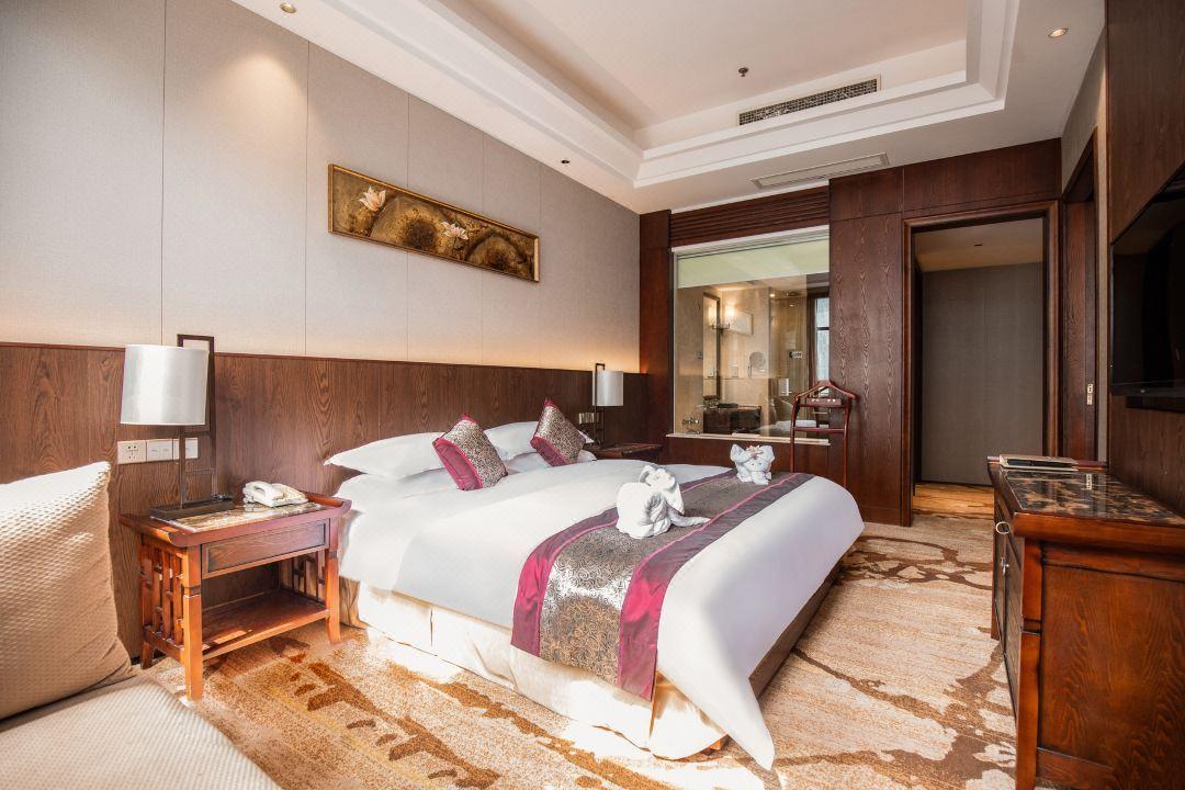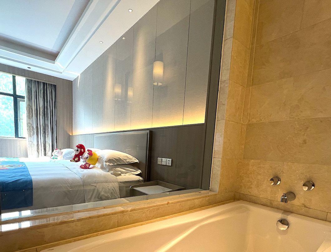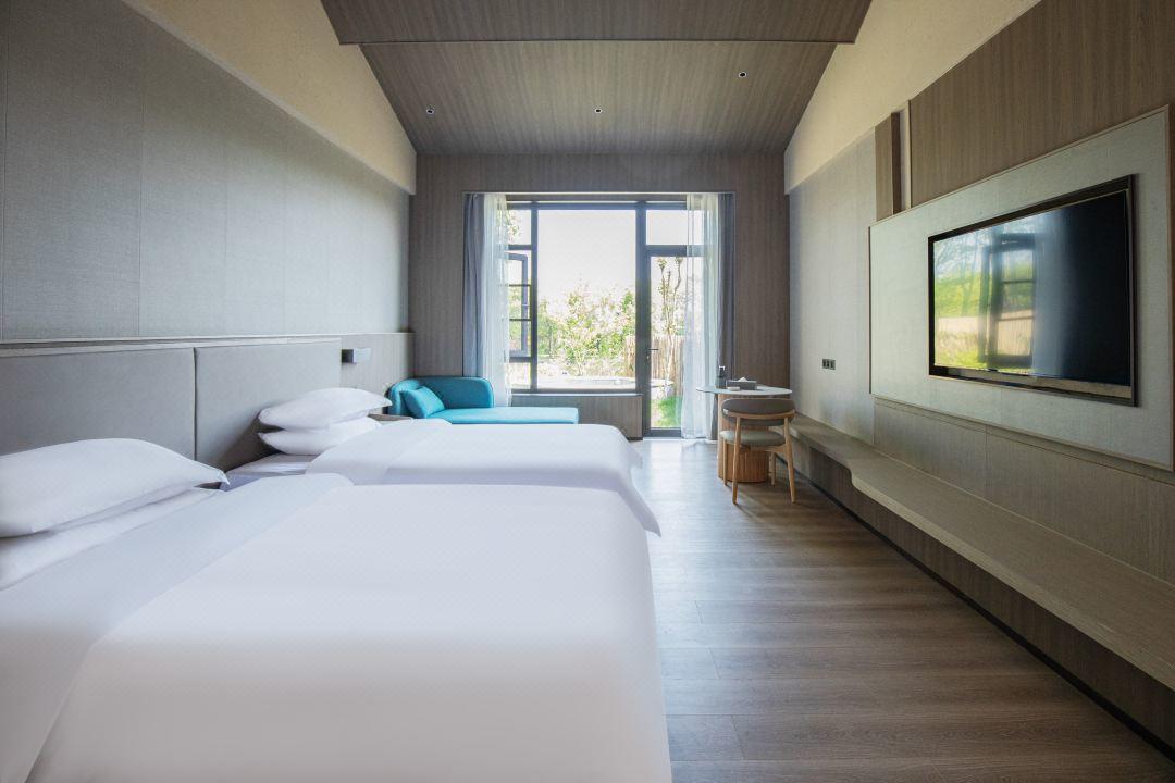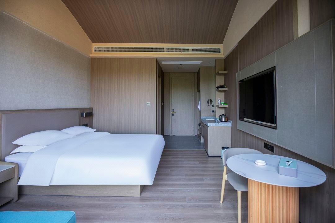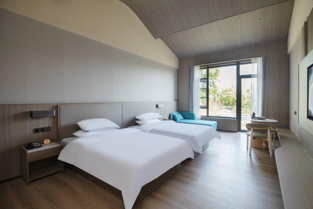 客房:酒店拥有231间各式轻奢客房,主要有豪华标准间、豪华大床房、豪华套房、山野别墅、四合院邻水客房和私汤邻水客房,面积40-500平方不等,能够承接各类会议团队和拓展研学市场,满足不同类型住店客户的需求。免费宽带、国际卫星电视、高端卫浴等各项配套设施齐全,床品口碑获评“星级睡眠体验·6A级舒适认证”,让您在下榻的每时每刻都能尽享惬意悠闲。 此外,酒店拥有中西式全日自助和精致高雅中餐厅,为您带来旅途中的美好味道。独有的露天温泉泡汤,配以优秀的服务管理团队和完善的SPA设施,让您感受身与心全面舒展的惬意。同时配备多主题艺术宴会厅、多功能会议厅、儿童乐园、书吧、游戏厅、室内露营等配套设施,以一站式贴心服务,将高端星级酒店的服务理念与酒店特色完美结合,让您能够尽享美好旅途。