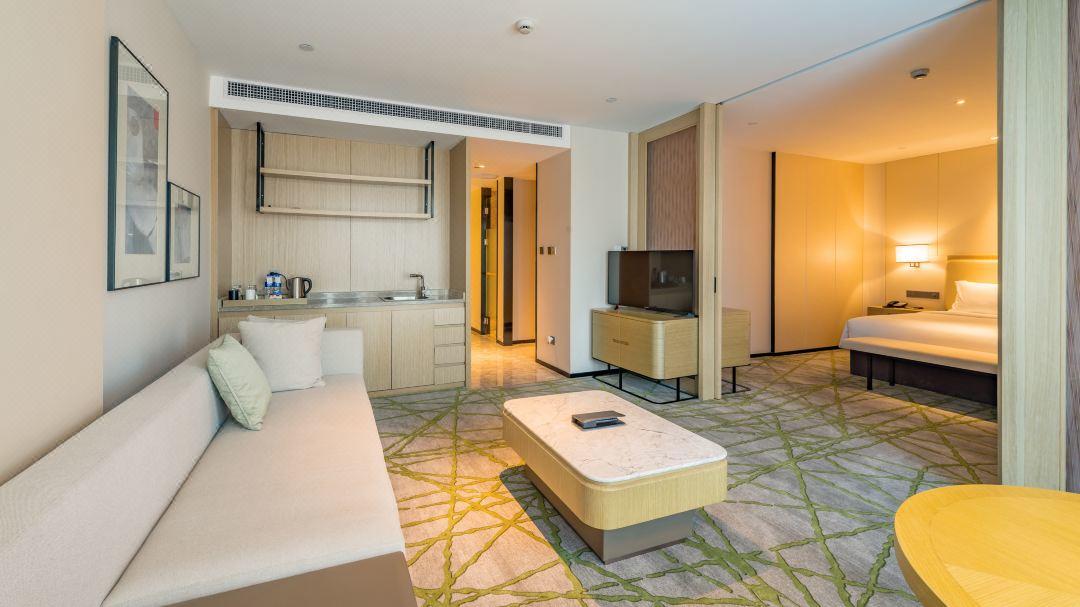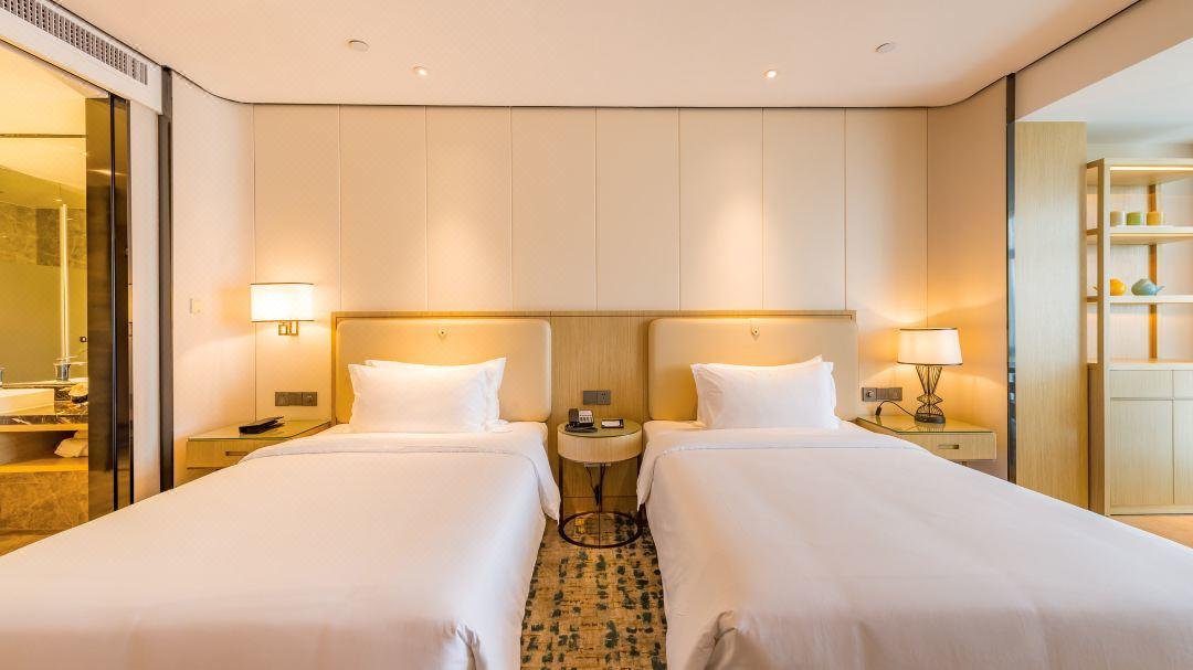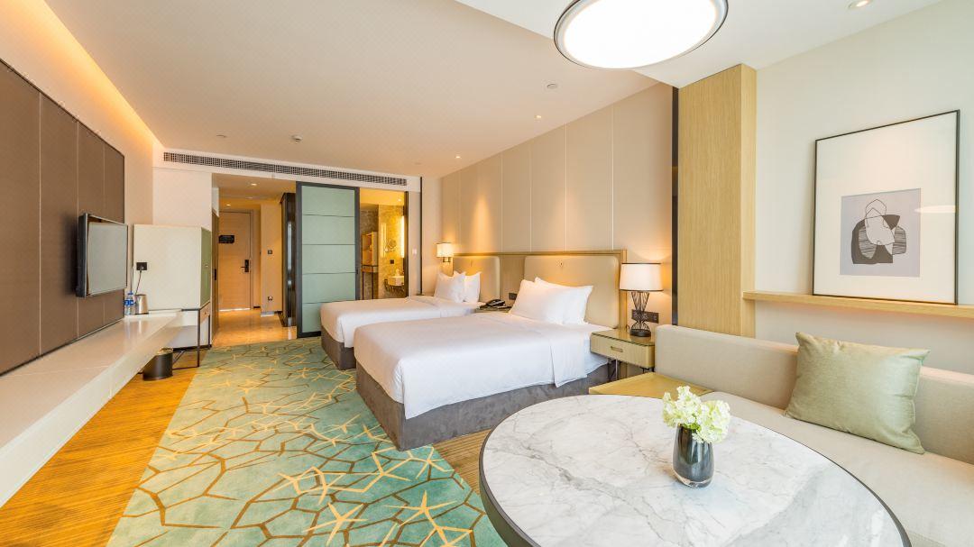 客房设施:酒店豪华睡眠床具、无线WiFi及高速有线网络等完善设施。干湿分区的沐浴和淋浴,中央空调控制系统,为客人营造温馨舒适的休憩氛围。酒店还提供亲子房,适合带娃的家庭。