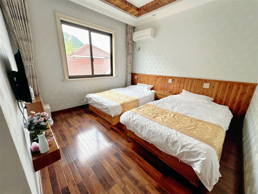 客房:能同时入住19人,房型有标间4间(1.2),大床房4间(1.8),亲子间1间(1.5+1.2),房间均配有中央热水器,24小时供应热水,床单被套一客一换。