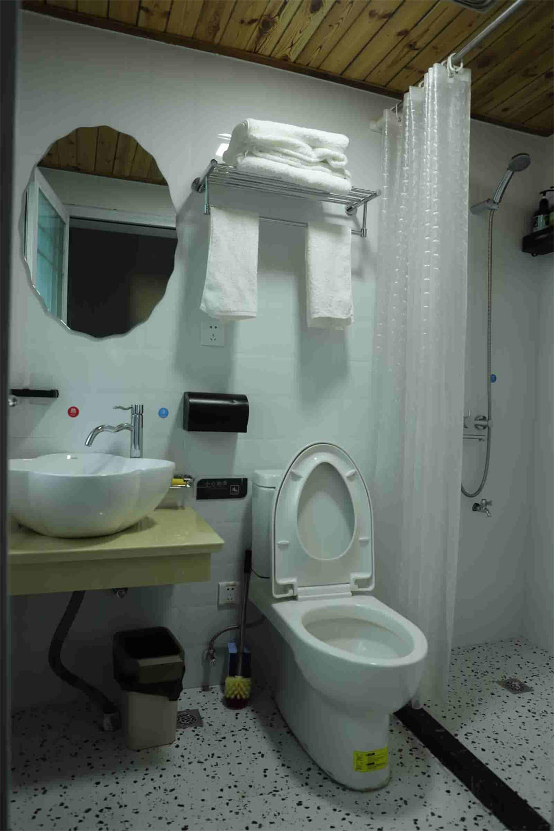 客房:能同时入住17人,房型有标间3间(1.2),大床房4间(1.8),亲子间1间(2.0+1.0),房间均配有中央热水器,24小时供应热水,床单被套一客一换。