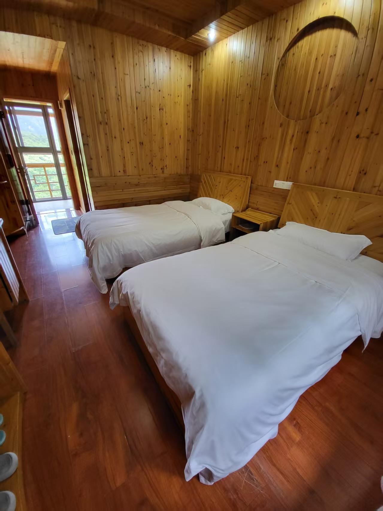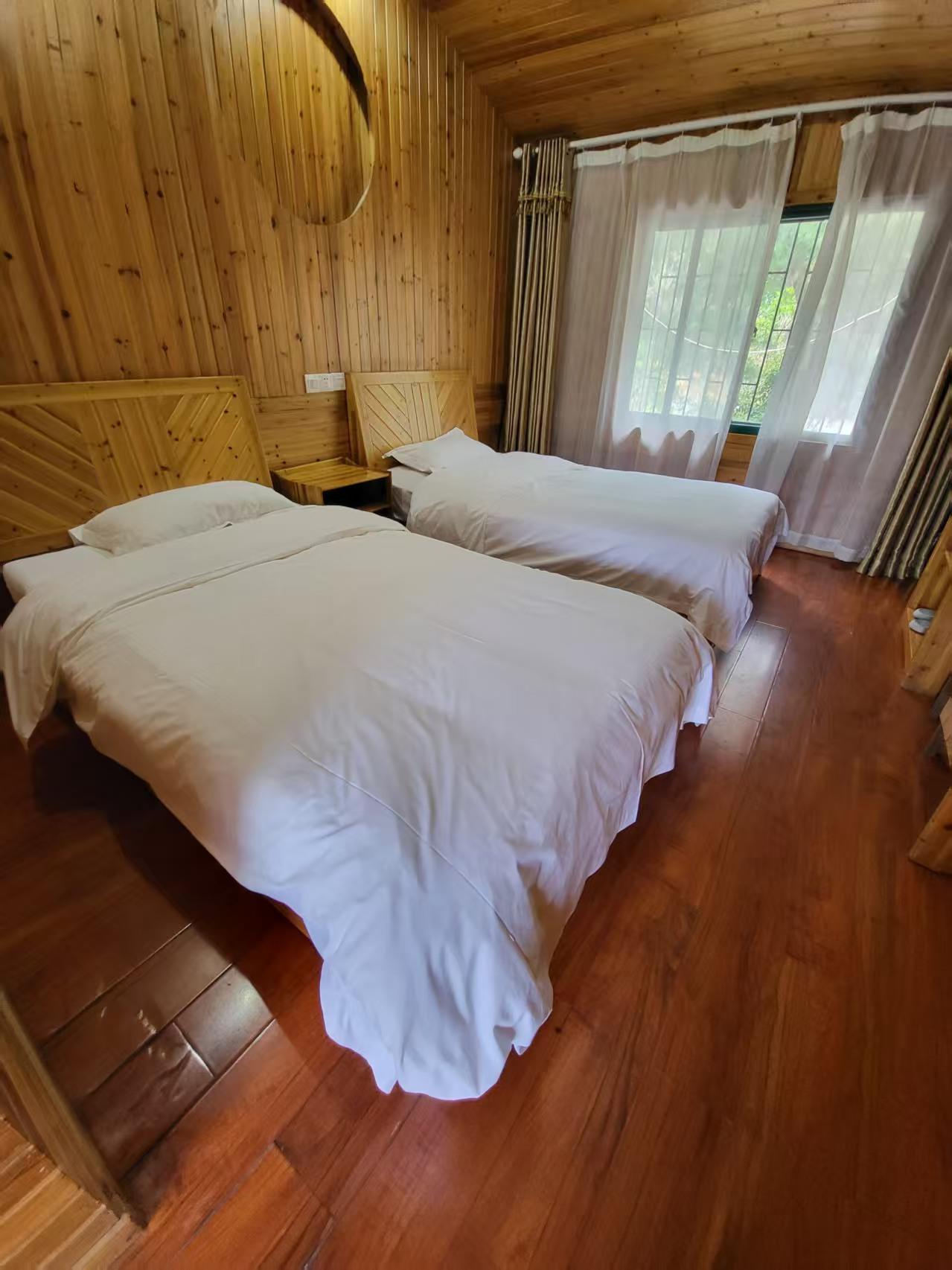 客房:能同时入住120人,房型有标间,大床房,房间均配有热水器,24小时供应热水,床单被套一客一换。