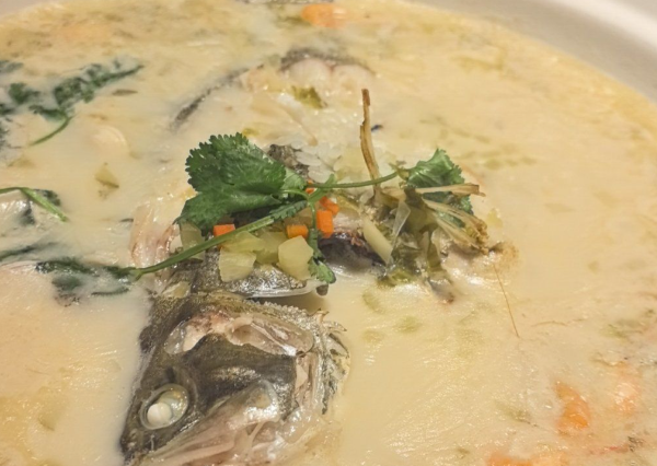 选用万绿湖特产的鲜活桂花鱼,这种鱼肉质鲜嫩、无细刺,是制作上汤桂花鱼的理想食材。搭配猪瘦肉、猪筒骨等食材吊制的高汤,以及本地时蔬如丝瓜、水豆腐等,使菜品鲜上加鲜。